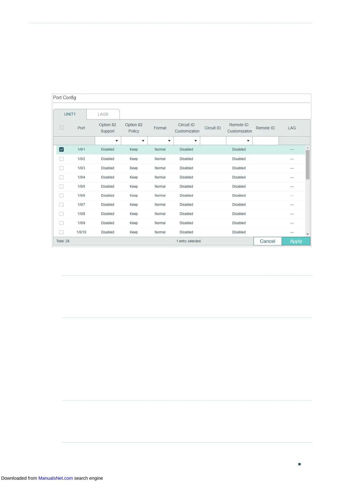3.1.2 Configuring Option 82 for Ports