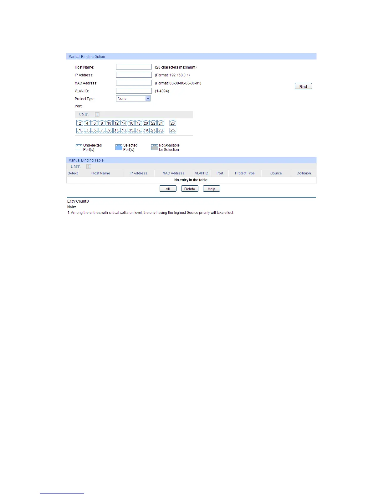 Choose the menu Network Security→IP-MAC Binding→Manual Binding to load the following