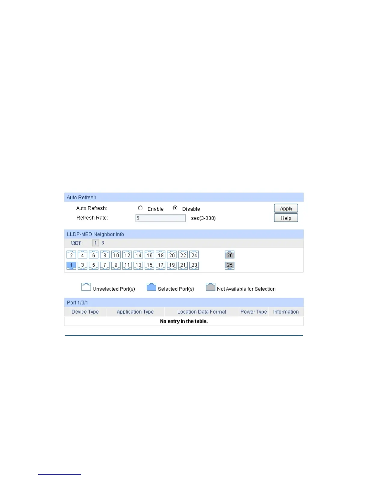 Select the desired port to display LLDP-MED information of neighbors of the corresponding