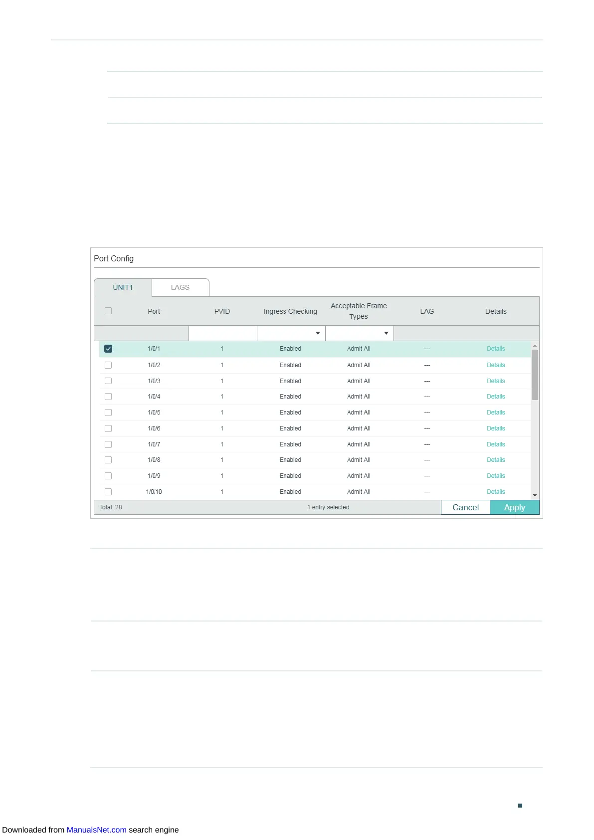Choose the menu L2 FEATURES > VLAN > 802.1Q VLAN > Port Config to load the