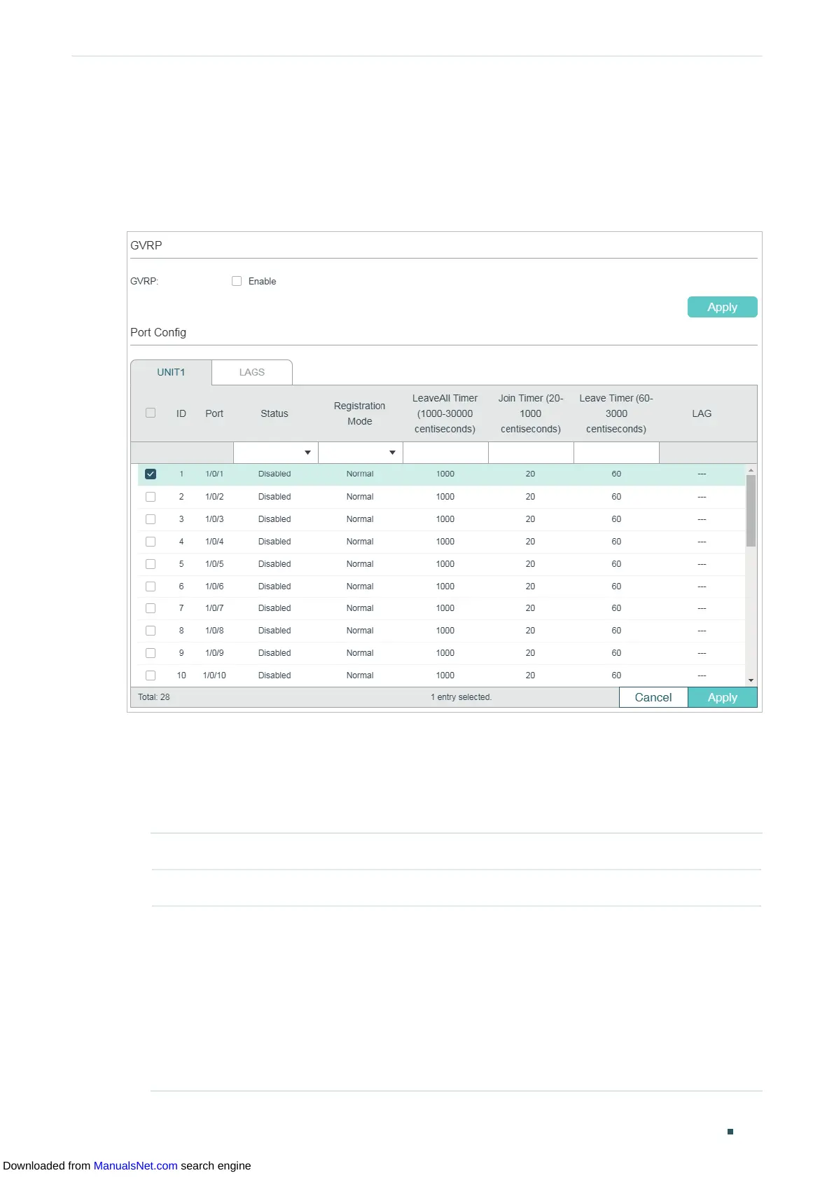 Port Select the desired port for GVRP configuration. It is multi-optional.
