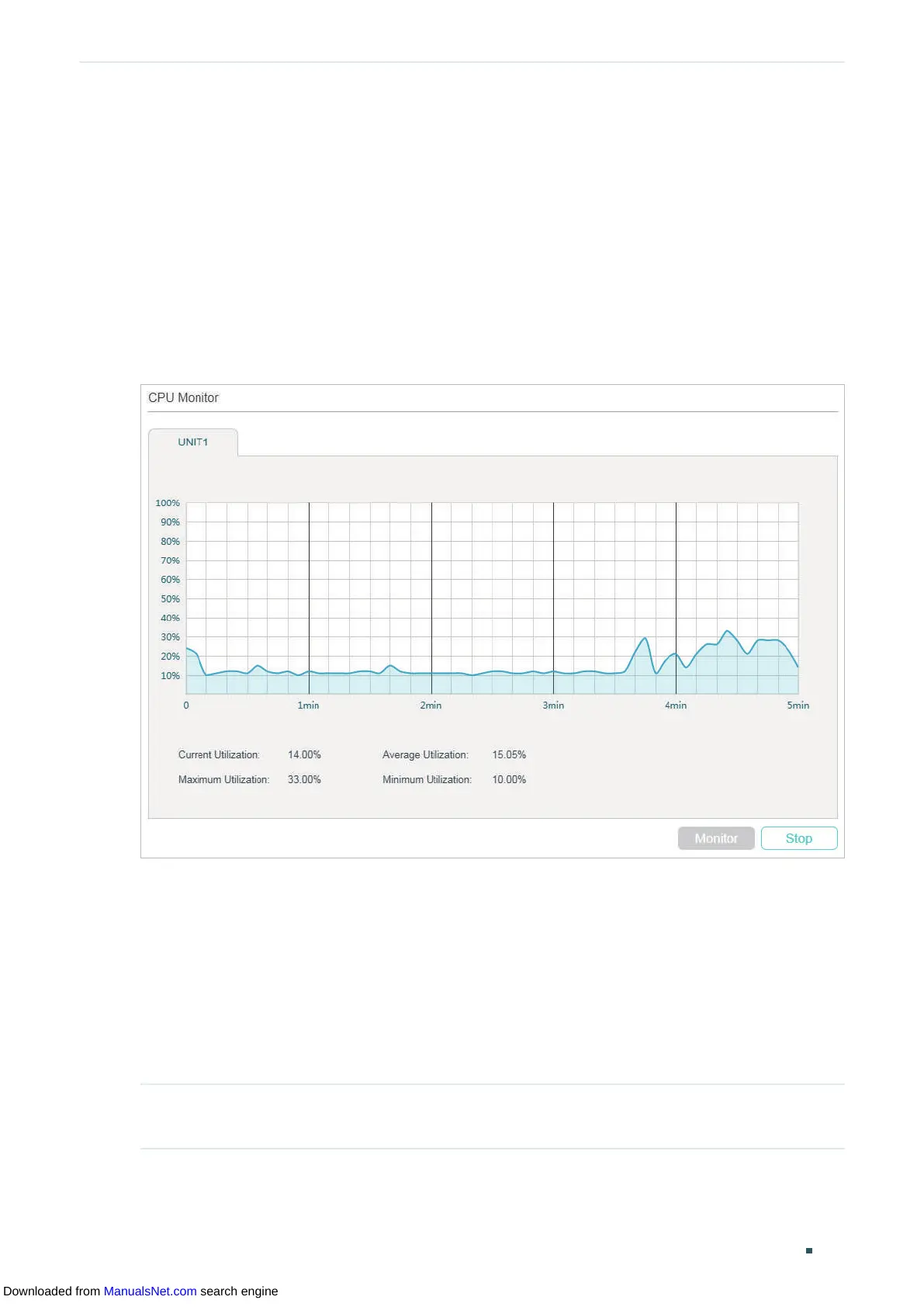 Click Monitor to enable the switch to monitor and display its CPU utilization rate every five