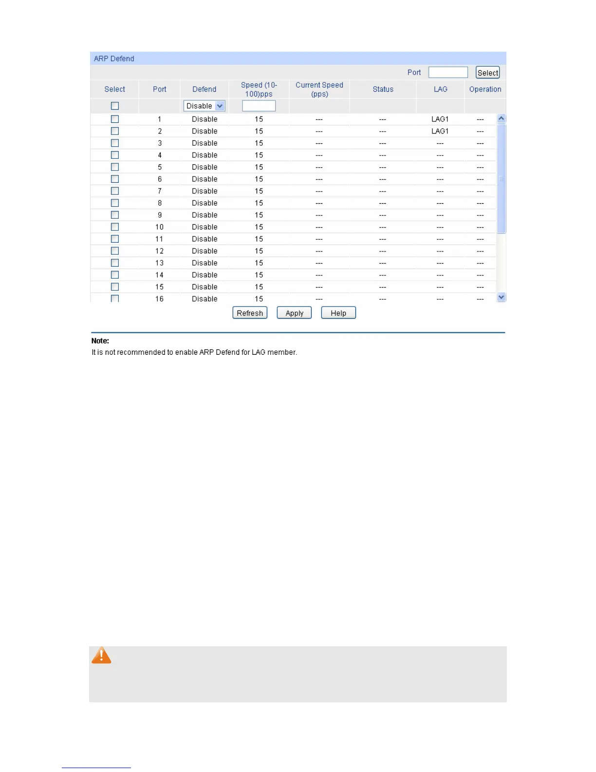 1.  It’s not recommended to enable the ARP Defend feature for the LAG member port.