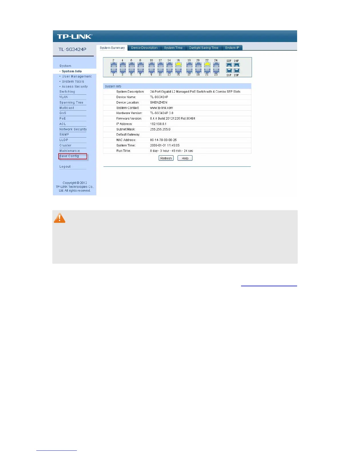 Config. You are suggested to click Save Config before cutting off the power or rebooting the