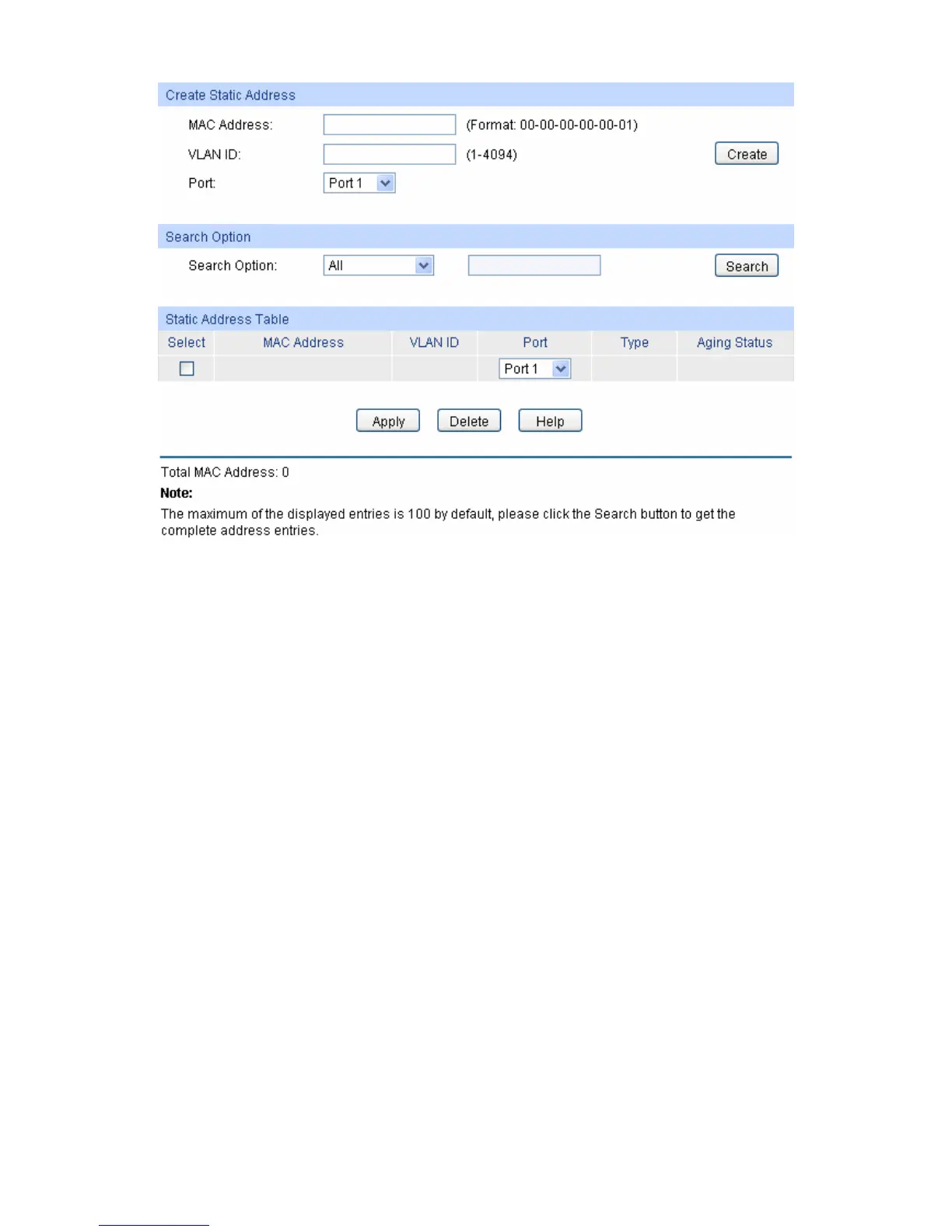 VLAN ID:  Enter the corresponding VLAN ID of the MAC address.