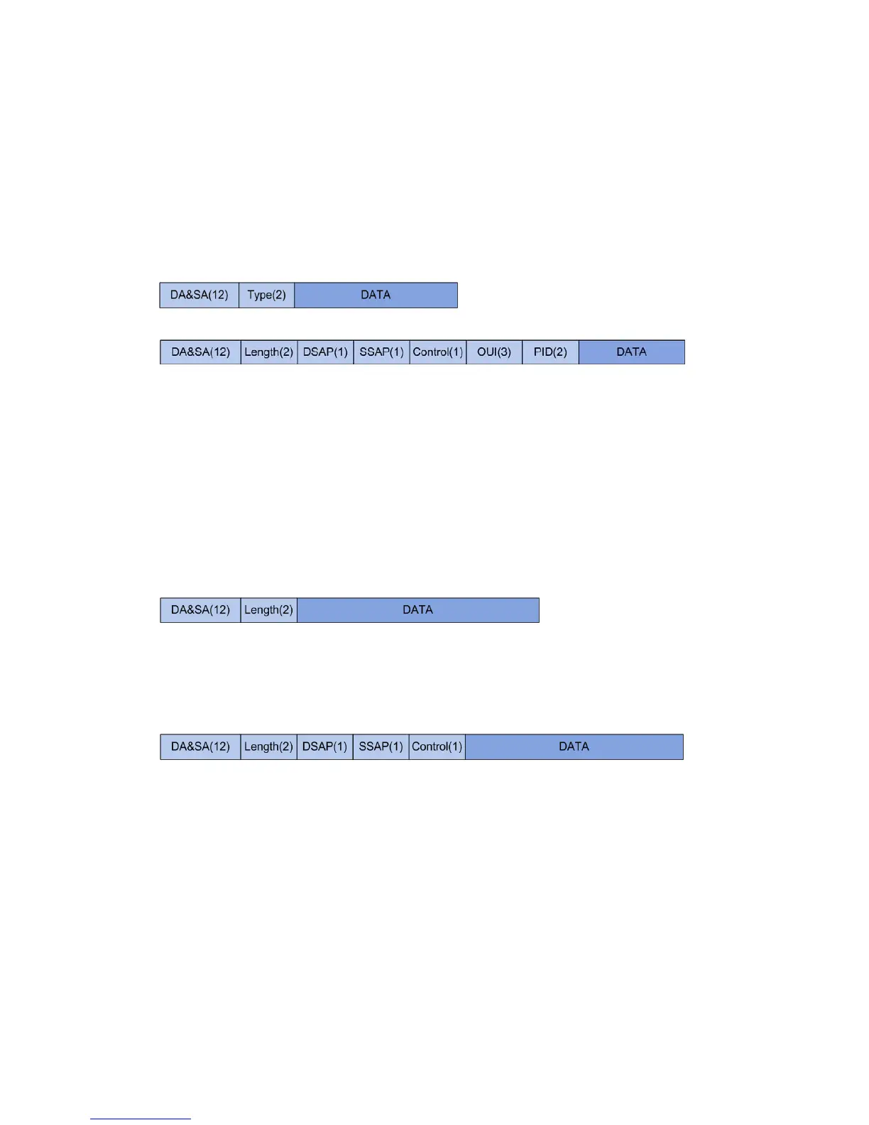 DA and SA respectively refer to destination MAC address and source MAC address. The