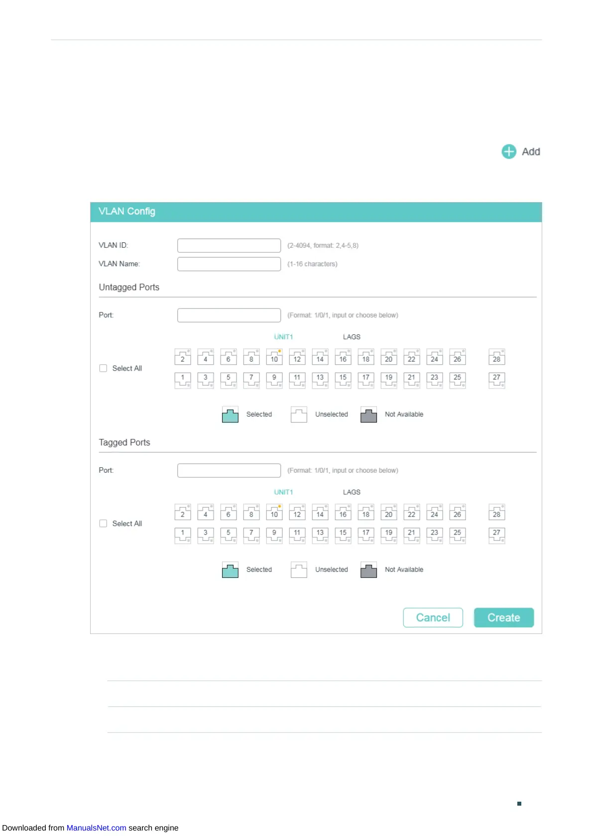 2)  Select the untagged port(s) and the tagged port(s) respectively to add to the created