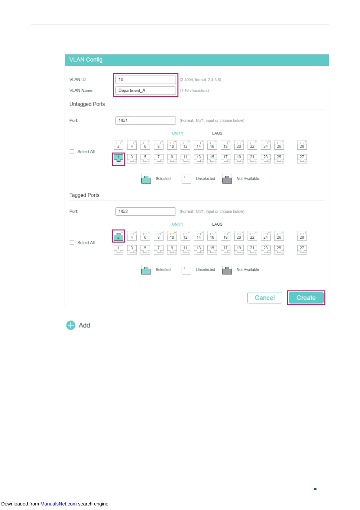 tagged port 1/0/2 to VLAN 20. Click Create.