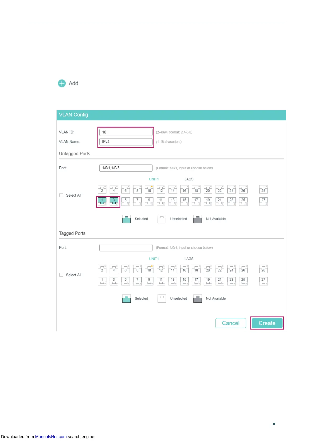 Figure 3-2  Create VLAN 10