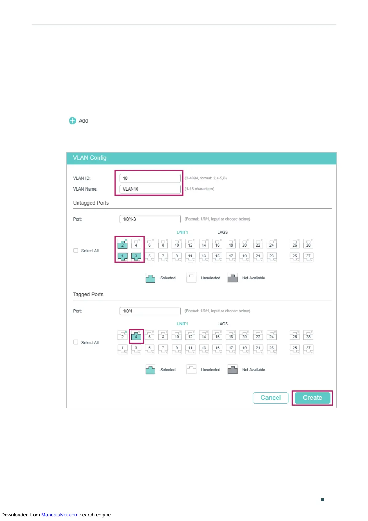 Figure 7-2 Create VLAN 10