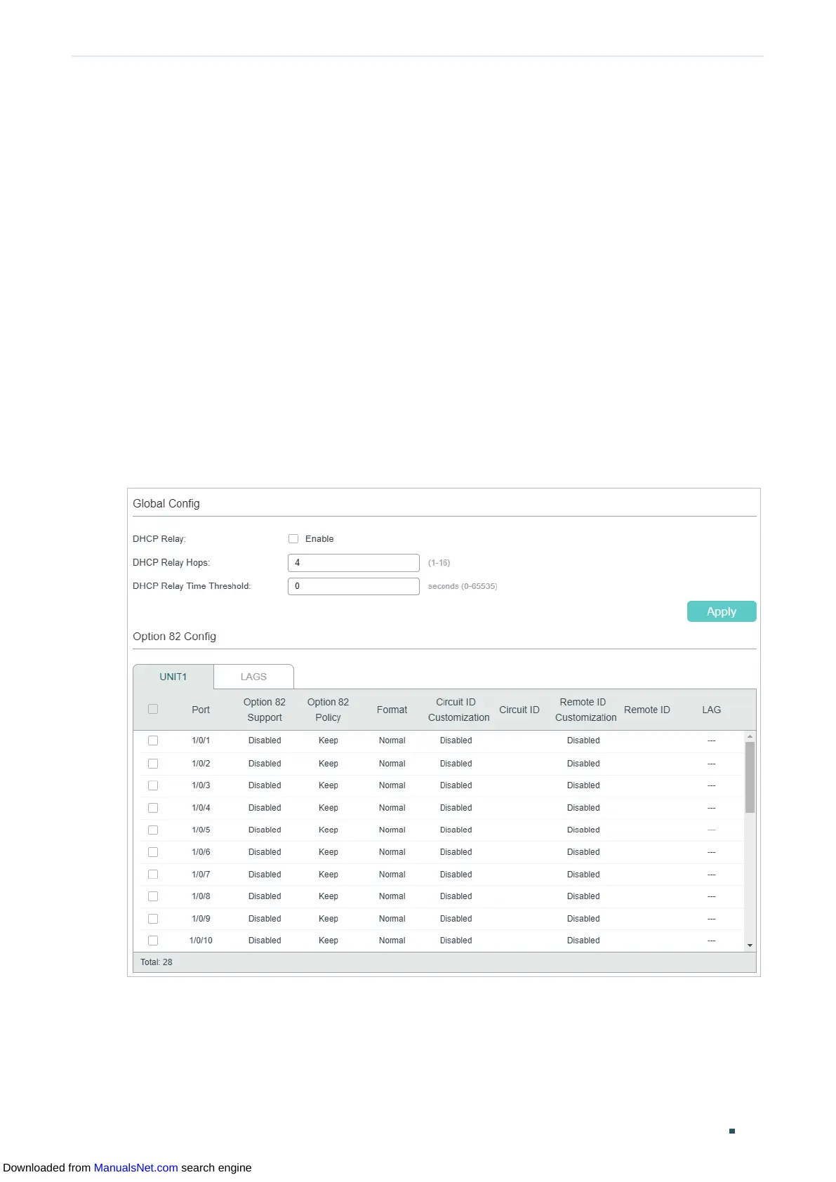 Figure 2-1 Enable DHCP Relay and Configure Option 82