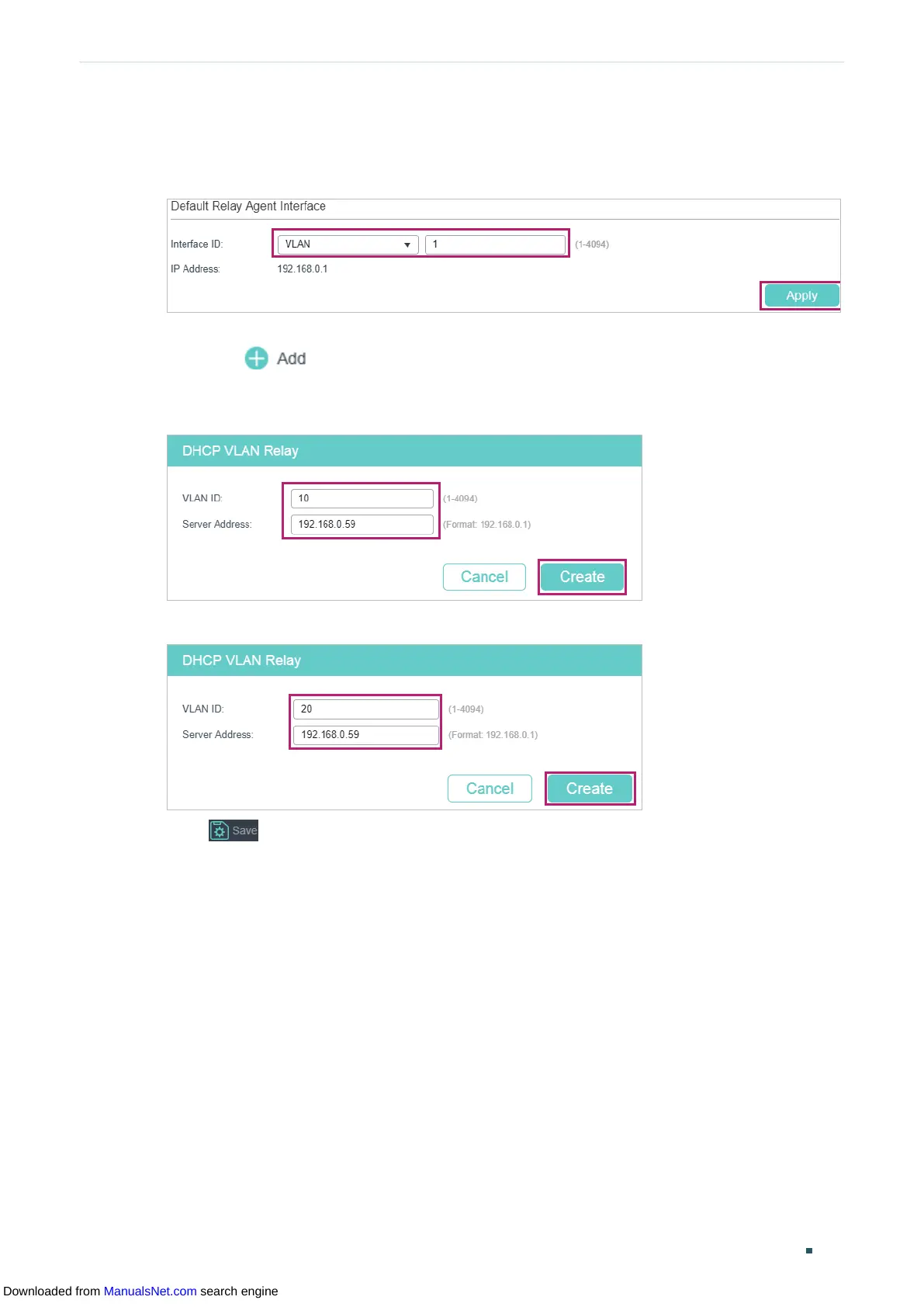Figure 4-9 Specify DHCP Server for Interface VLAN 20