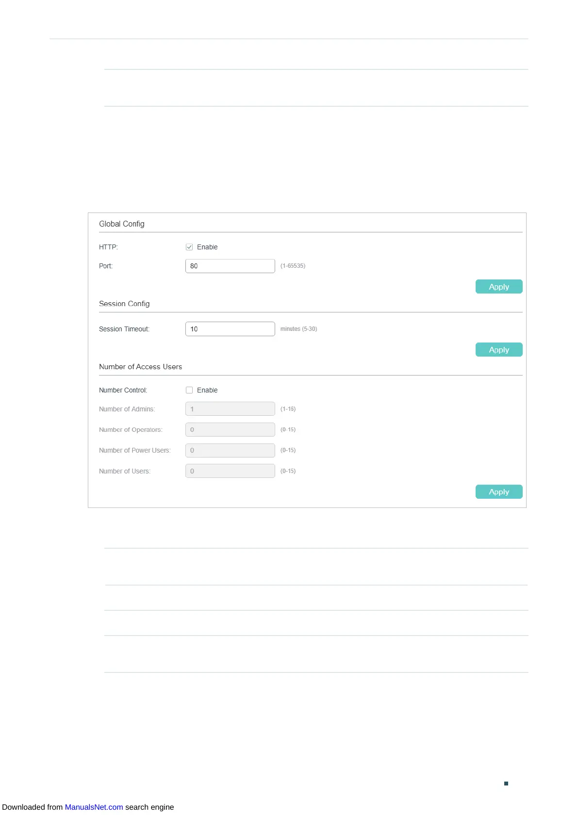 2) In the Session Config section, specify the Session Timeout and click Apply.