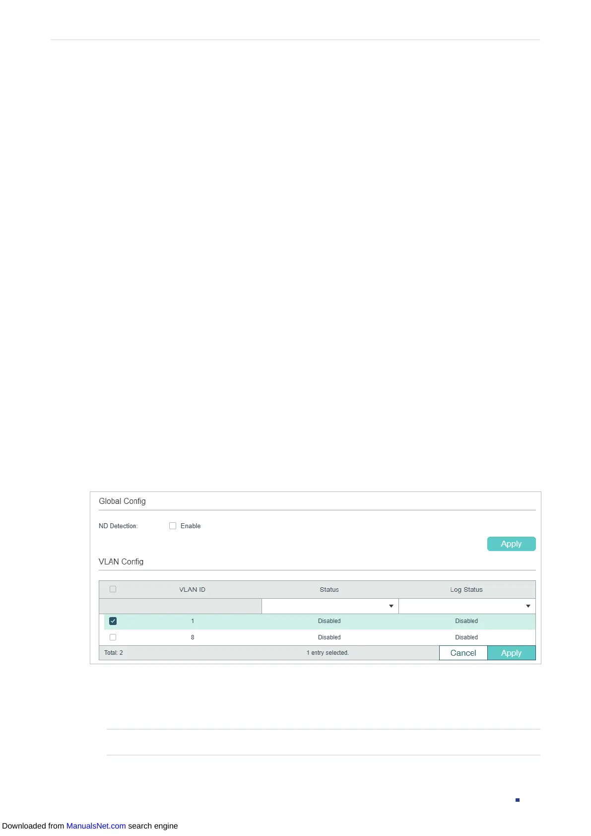 2)  In the VLAN Config section, enable ND Detection on the selected VLANs. Click Apply.