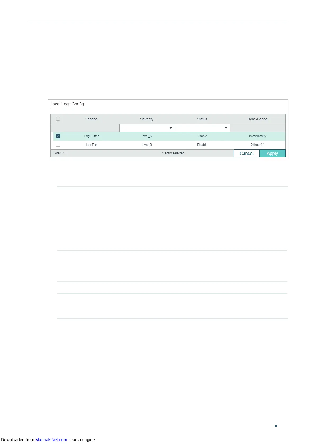 Log buffer indicates the RAM for saving system logs. The channel is enabled by