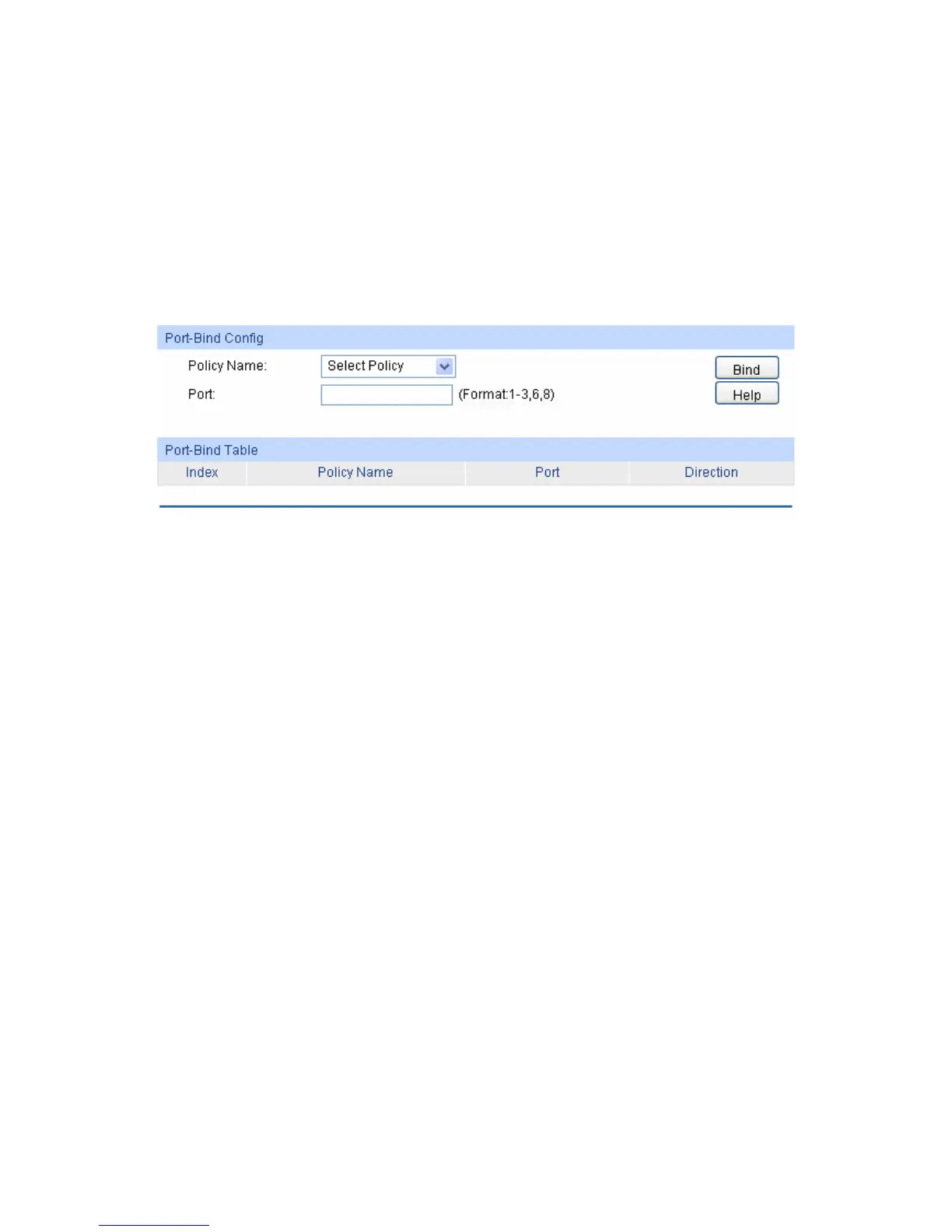 menu ACL→Policy Binding→Port Binding to load the following page.
