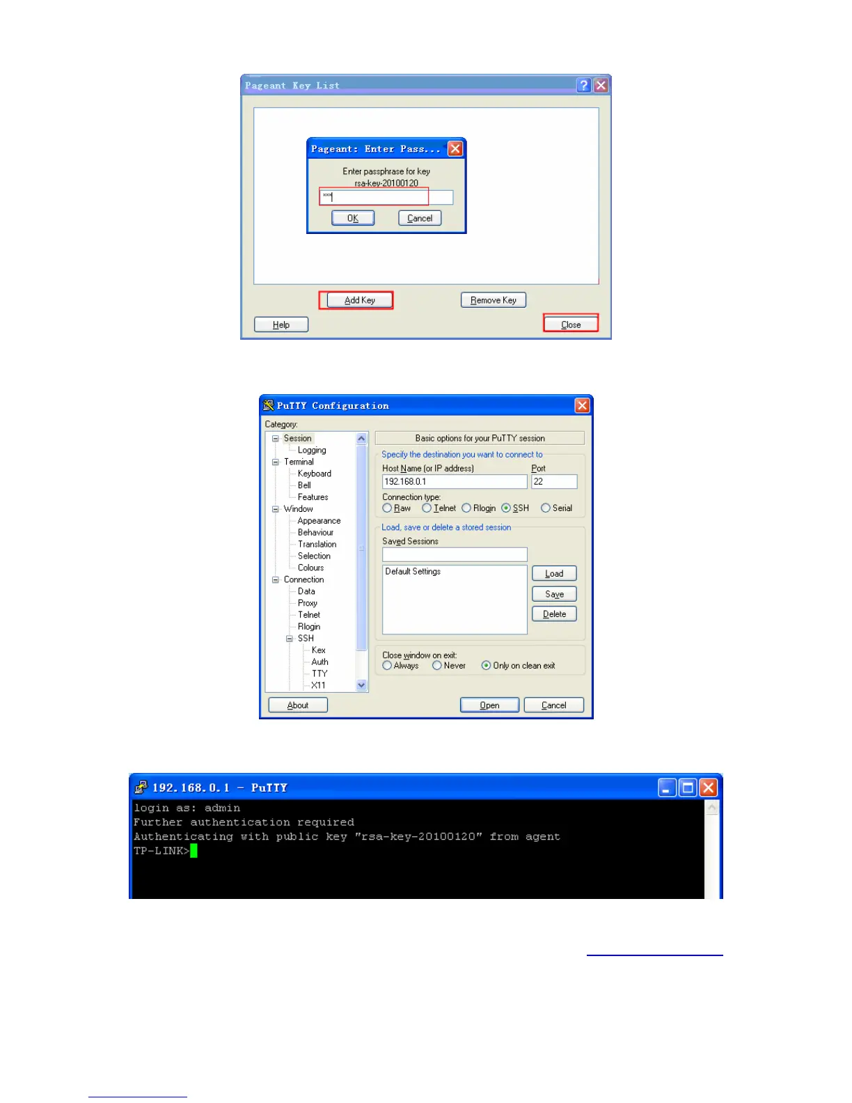 5. After the public key and private key are downloaded, please log on to the interface of PuTTY