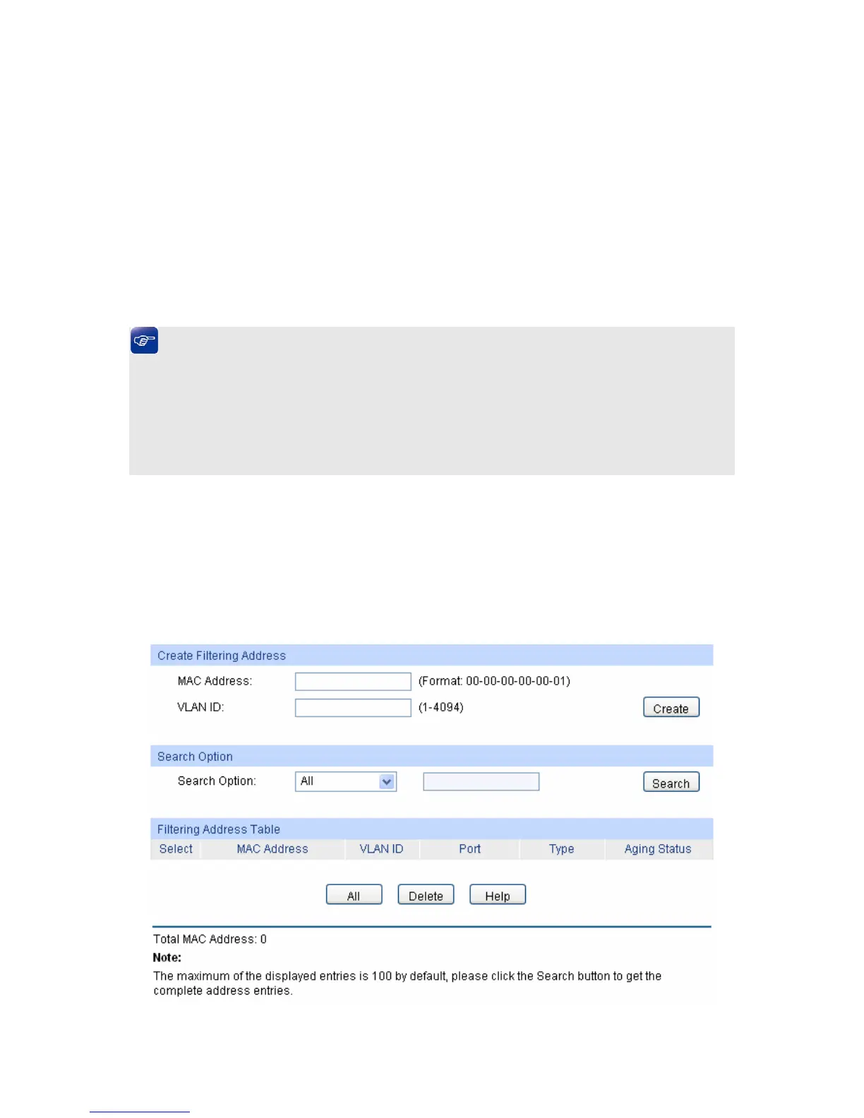 destination address, so as to guarantee the network security. The filtering MAC address entries