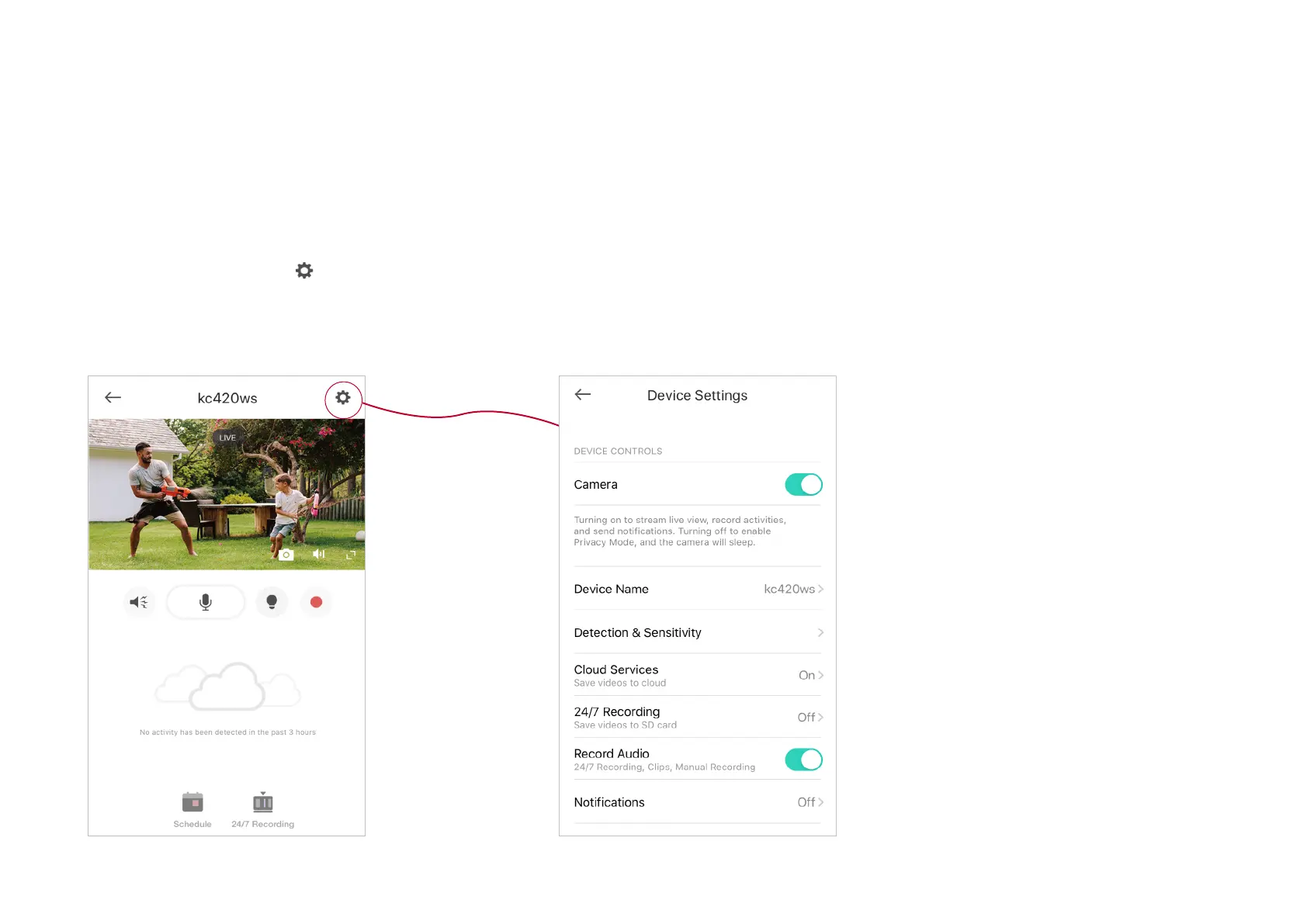 TP-Link Kasa Cam Outdoor - Device Settings: Camera Power; Camera OnOff and Privacy Mode