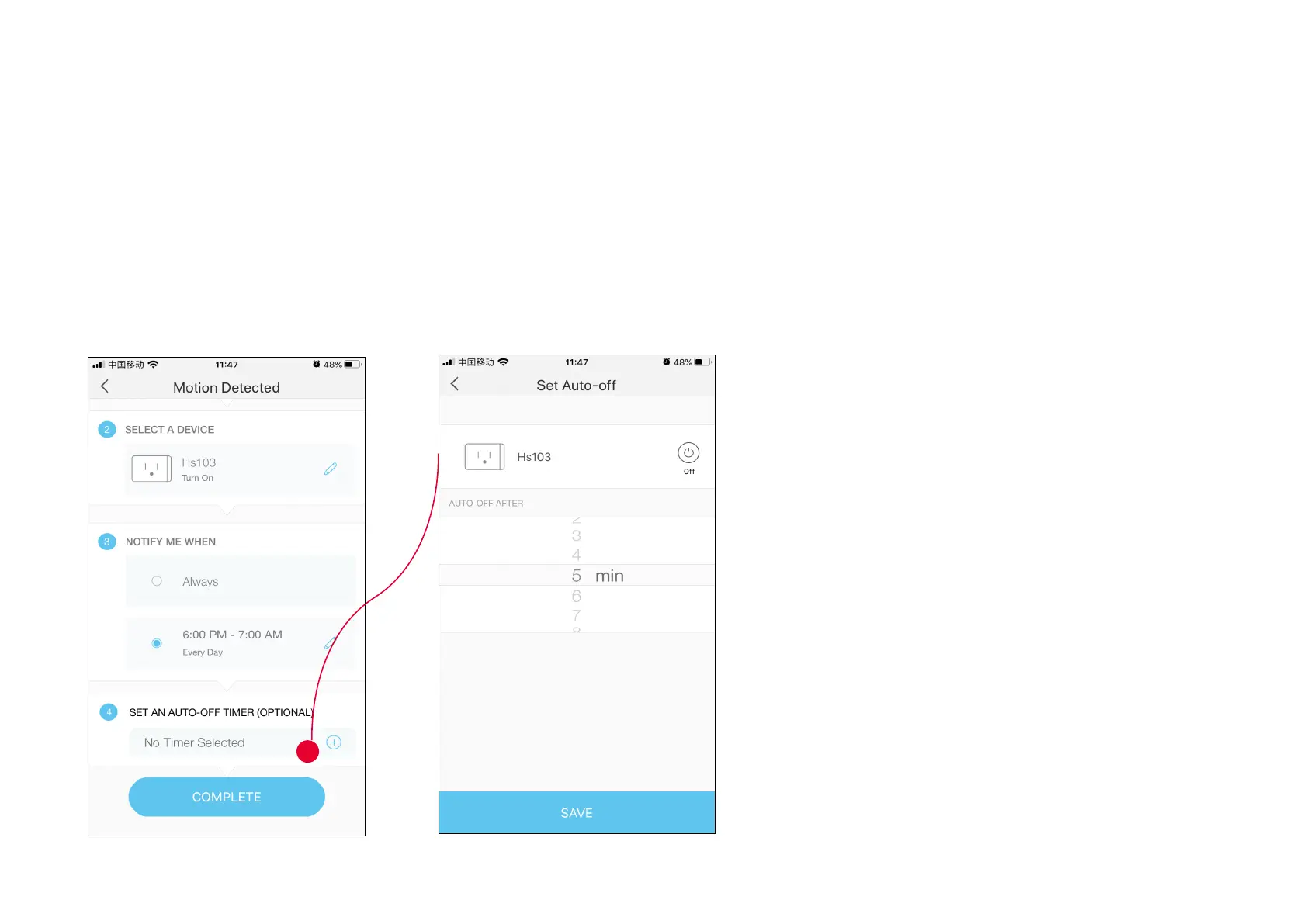 4. (Optional) Set an auto-o timer then tap Complete. Then your light will be turned o after the time you set.
