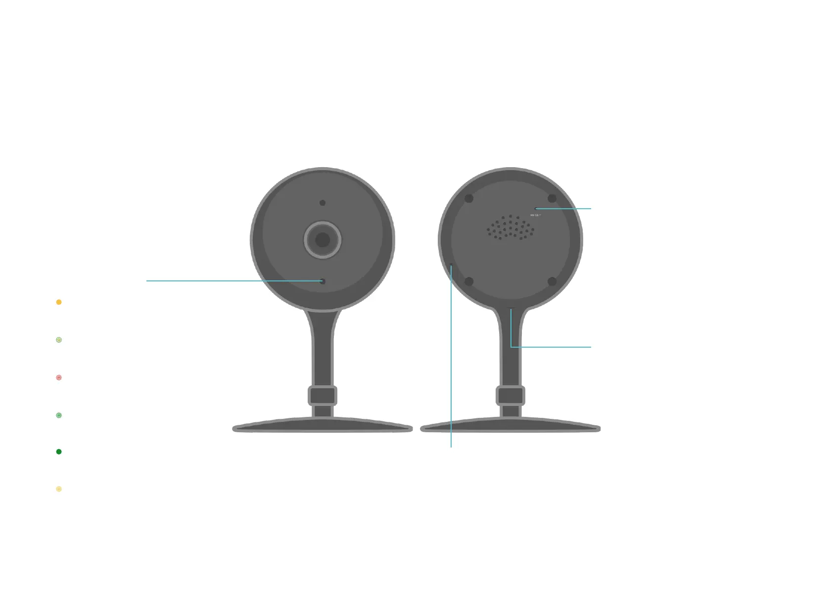 Kasa Cam has a system LED that changes color according to its status, a microphone, a USB micro port and a RESET button. See the explanation