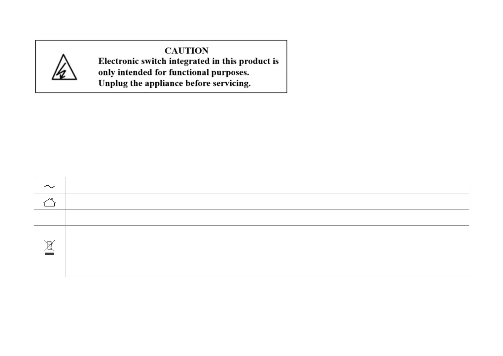 Heater: ≤1500 W Humidier: ≤260 W Toaster: ≤850 W Tower Fan: ≤50 W Iron: ≤1500 W