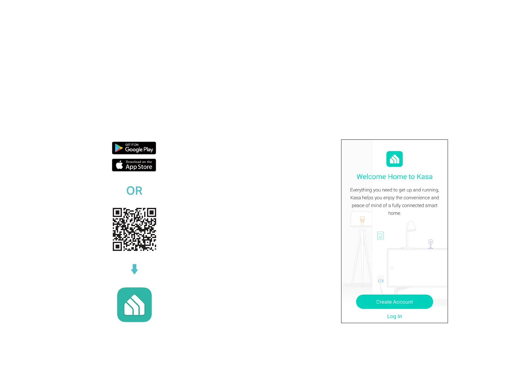 below to download the Kasa Smart app on your Android or iOS