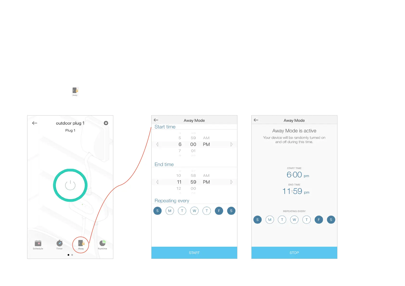 Away Mode: Set Away Mode for the connected devices to turn on/o automatically at random intervals