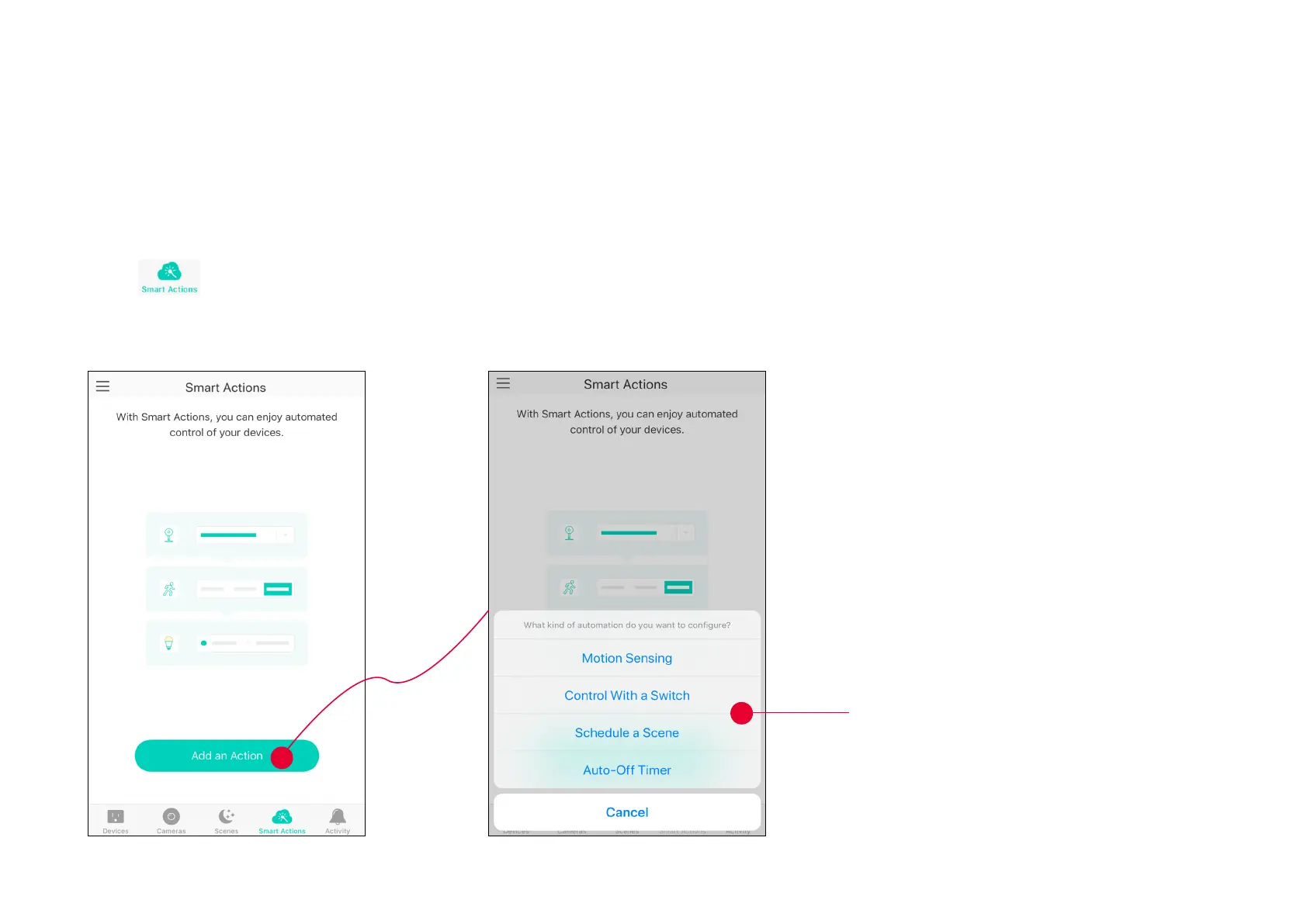 Smart Actions is a function that enables device interconnections and home automations. With Smart Actions, your Kasa devices can work together