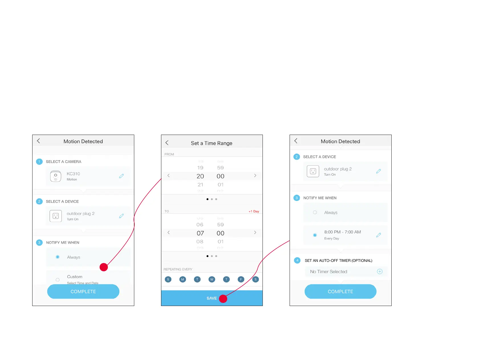 E.g. I want the motion to trigger the outdoor light on from 8:00 PM to 7:00 AM every day.