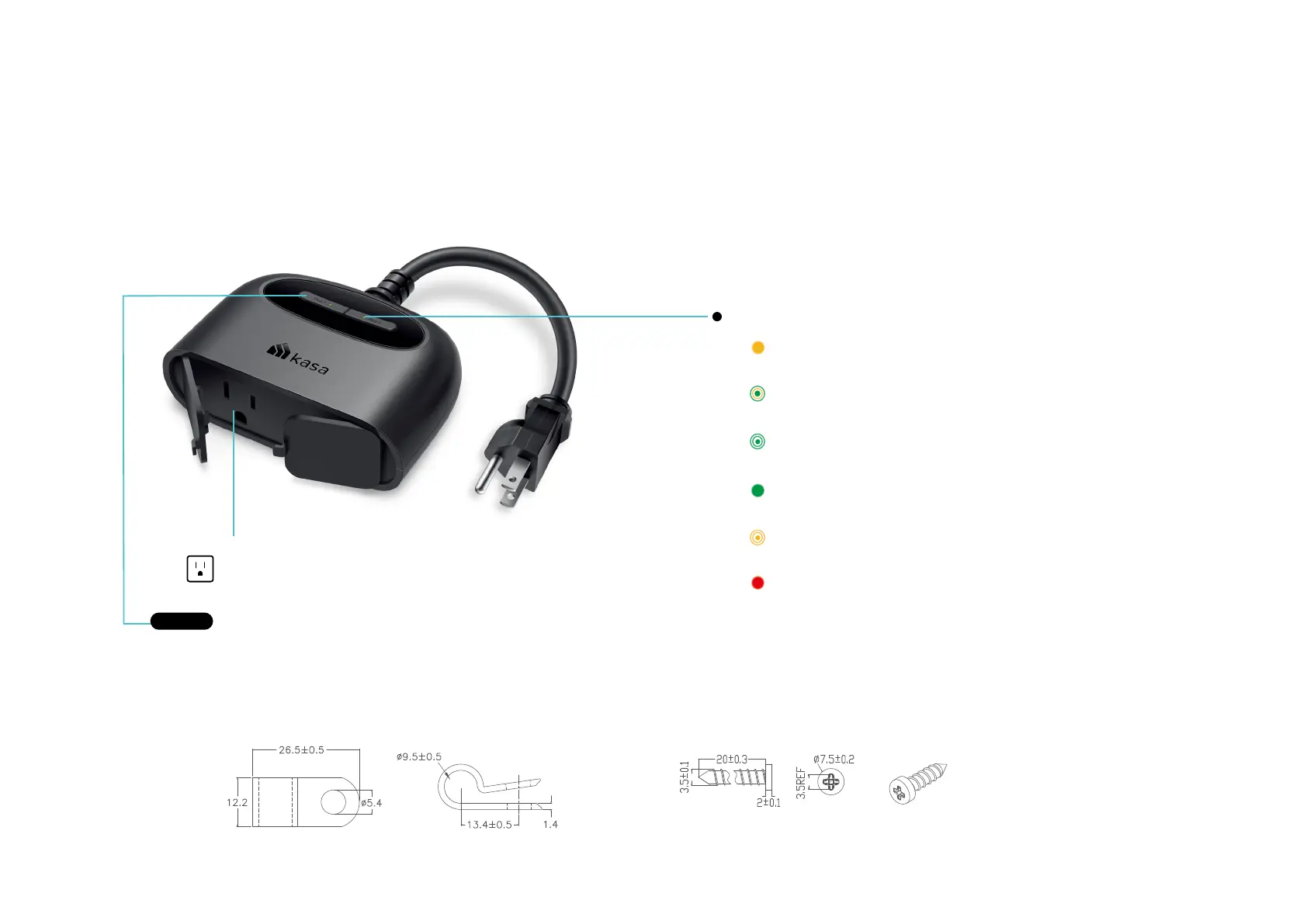 This smart outdoor plug has two control button to turn on or o the plug-in devices and two LEDs to show you the current status of each connected