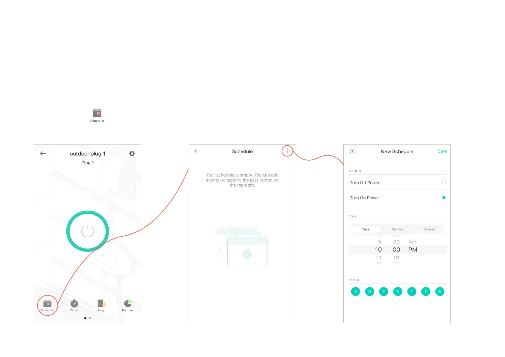 Schedule: Set schedules to automatically turn on/o the devices connected to your Smart Outdoor Plug