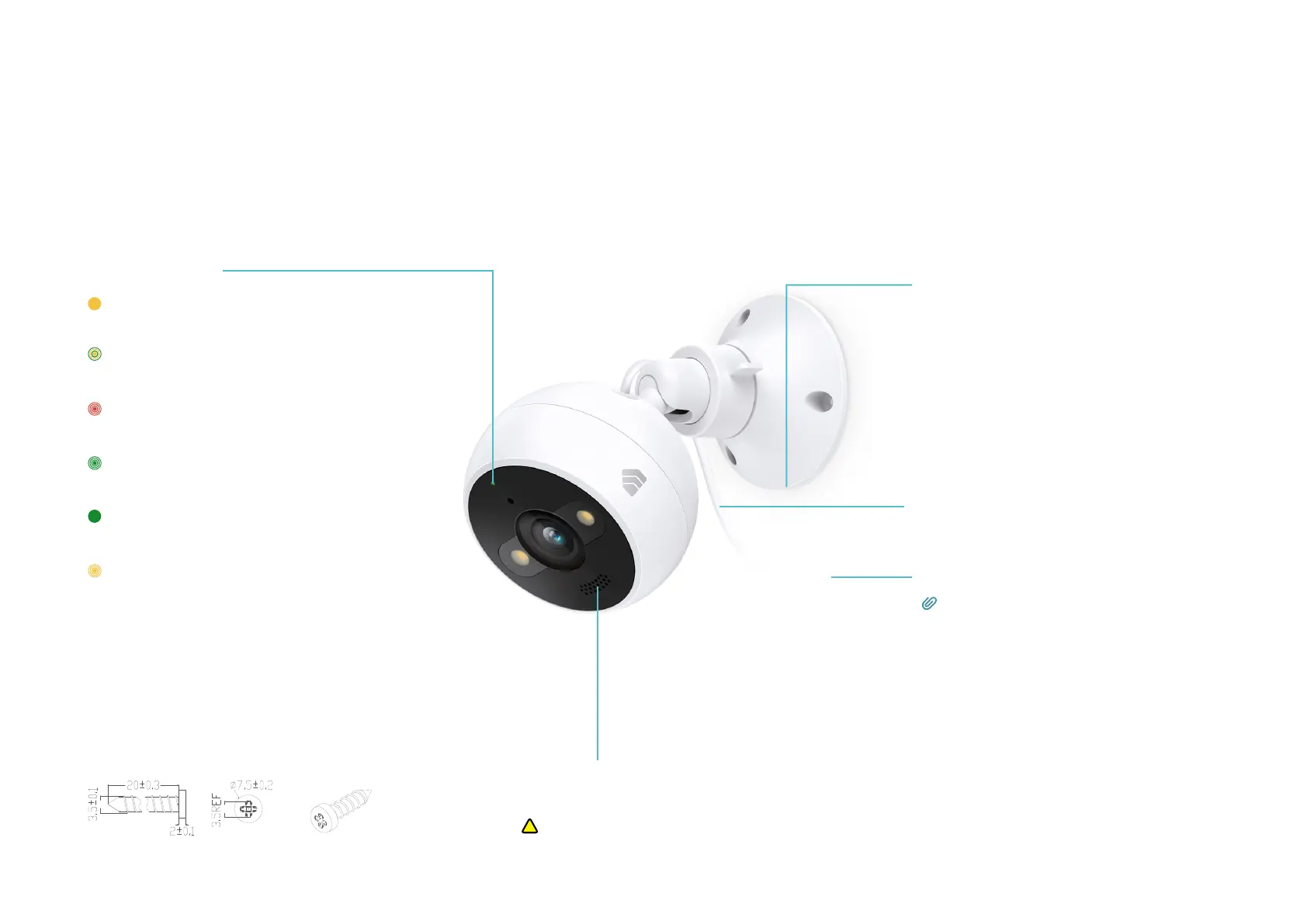 Kasa Cam Outdoor has a system LED that changes color according to its status, a microphone, a USB cable and a RESET button. See the explanation