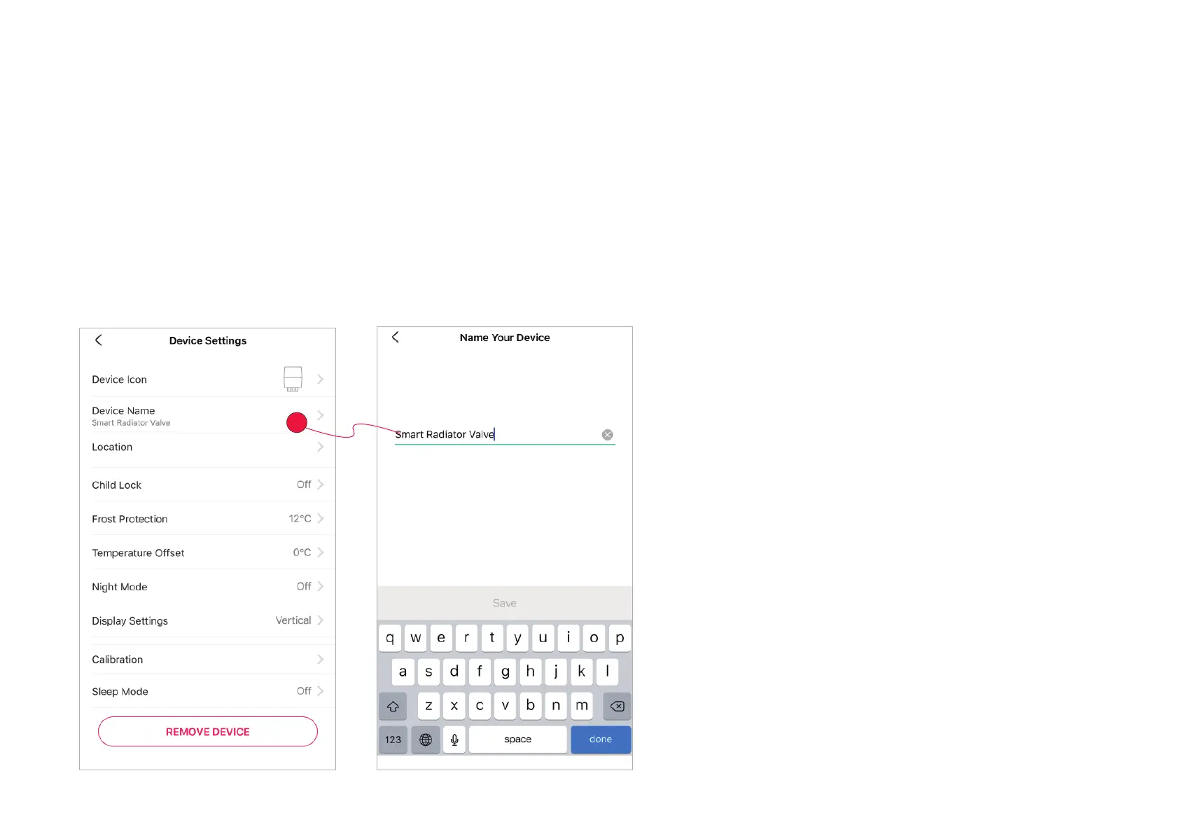 Tap Device Name in Device Settings page to give your device a name.