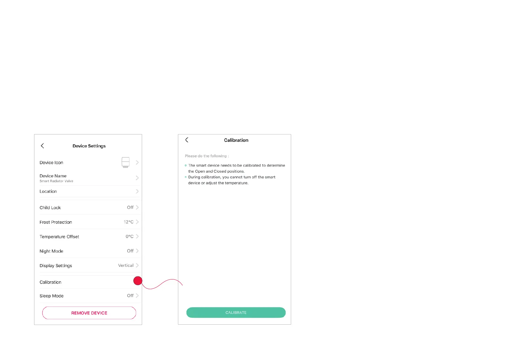 Note: During calibration, you cannot turn o the smart device or adjust the temperature.