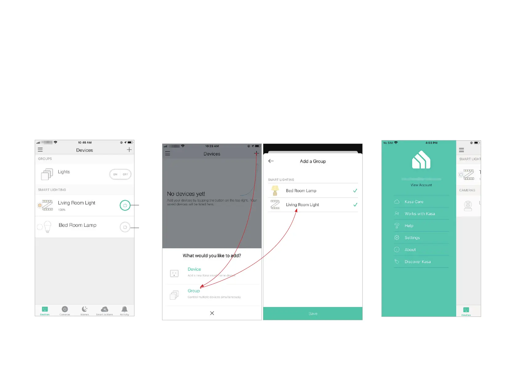 After you successfully set up your Light Strip, you will see the Devices page on the Kasa Smart app. You can add new devices, control multiple devices