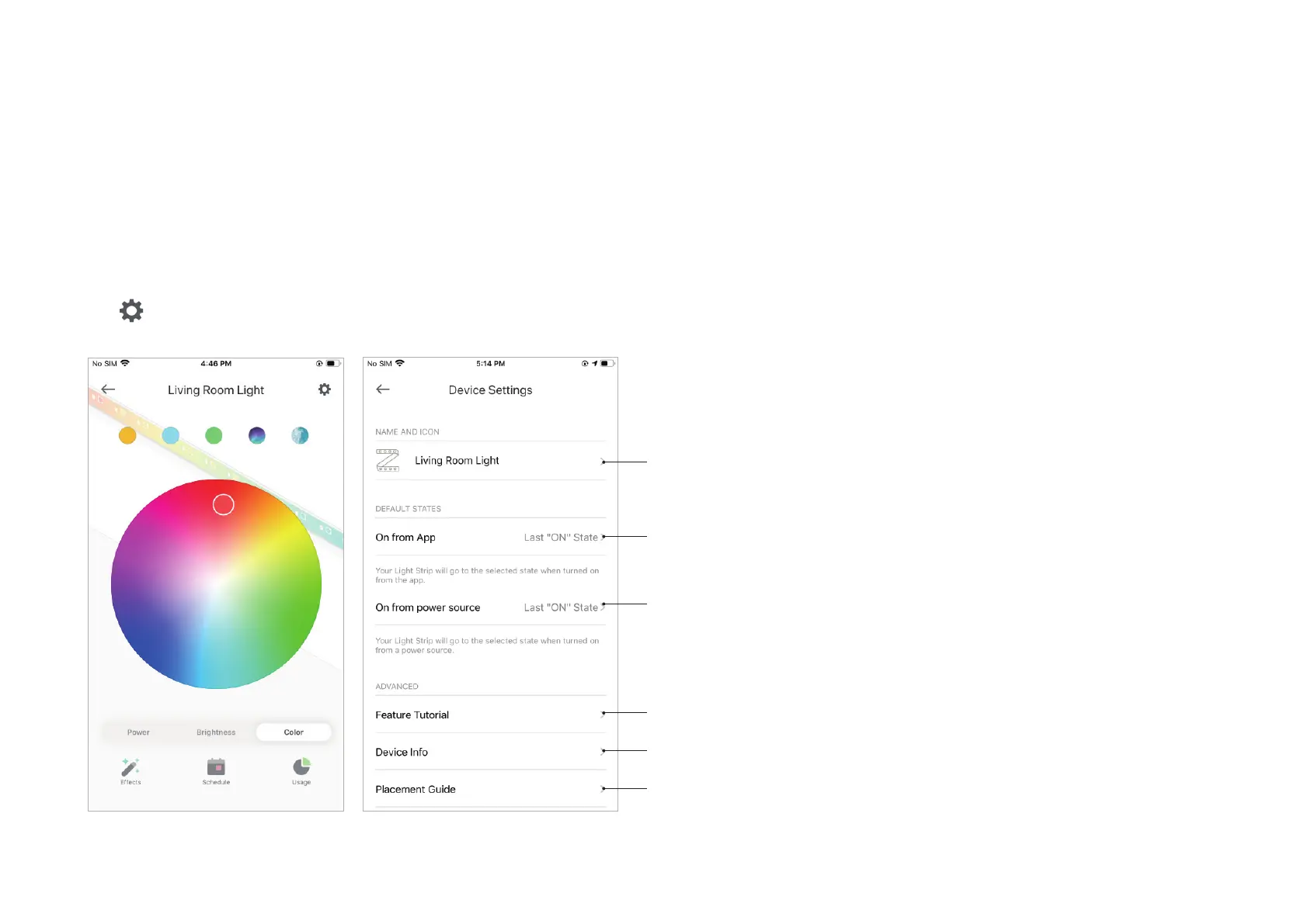Set the default state when your Light Strip is turned on from the app. For