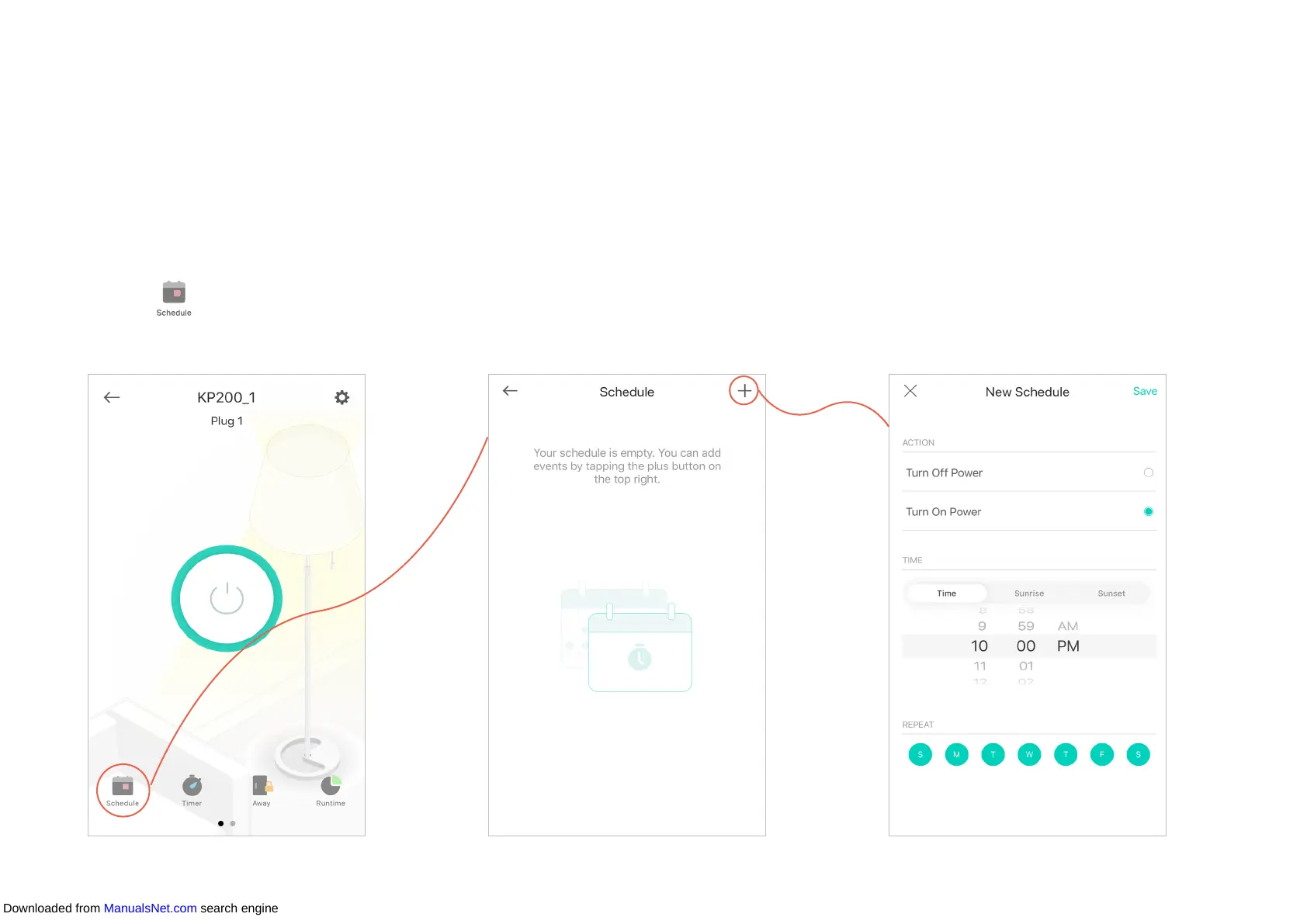 2. Tap + on the top right corner. 2. Set a schedule to turn the connected