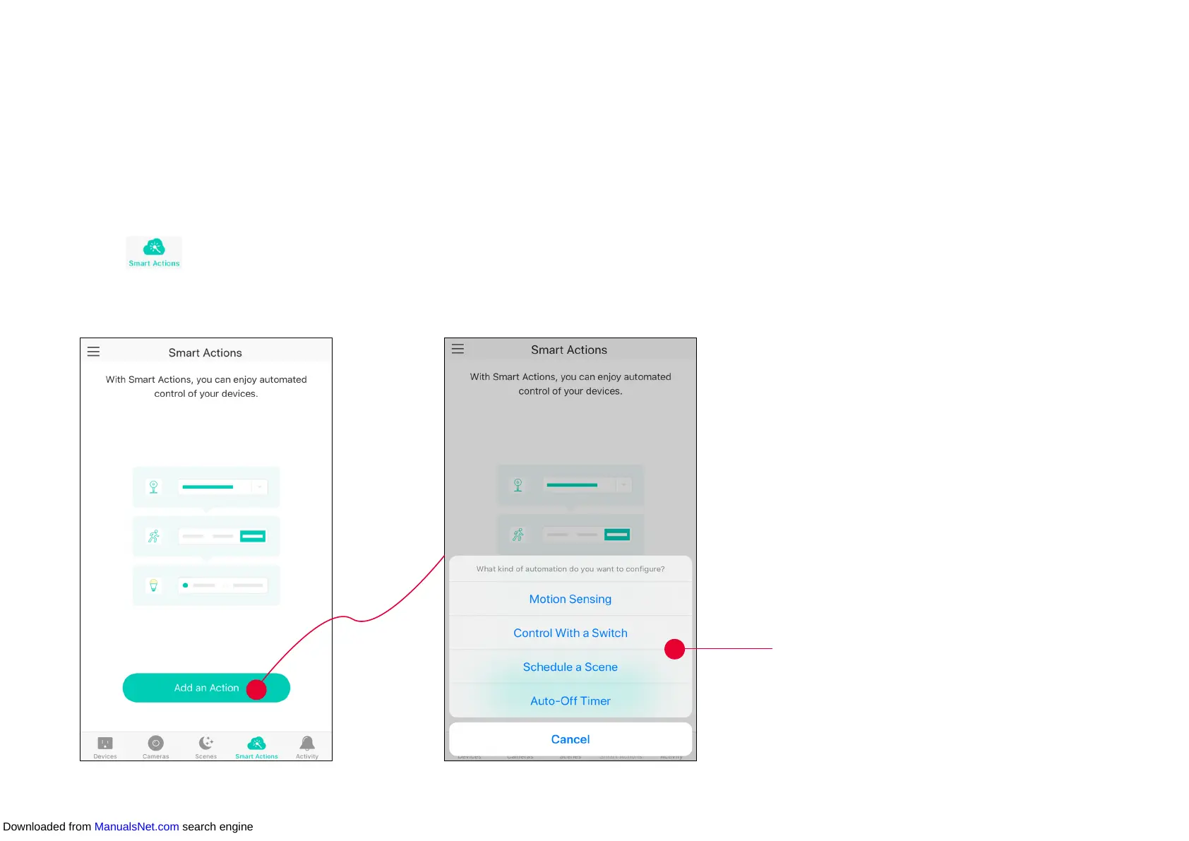 Smart Actions is a function that enables device interconnections and home automations. With Smart Actions, your Kasa devices can work together