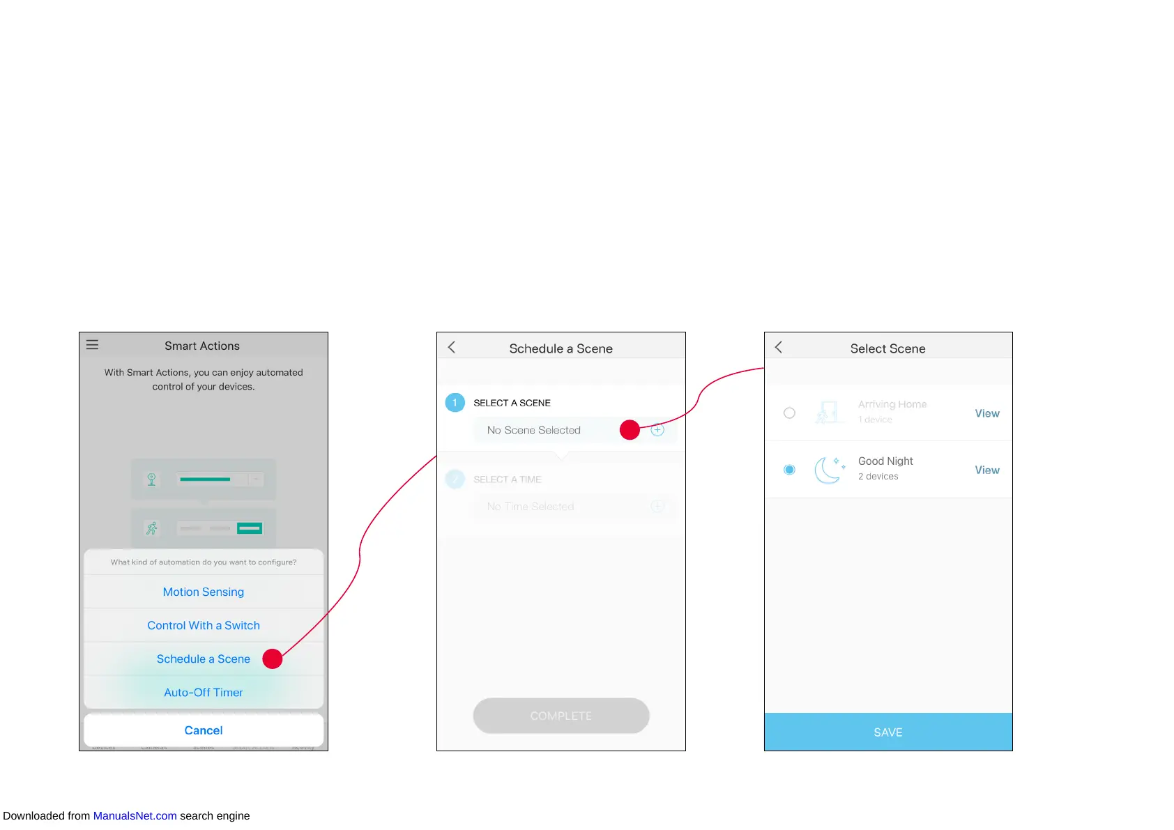 1. Tap Schedule a Scene. 2. Select a scene you have created