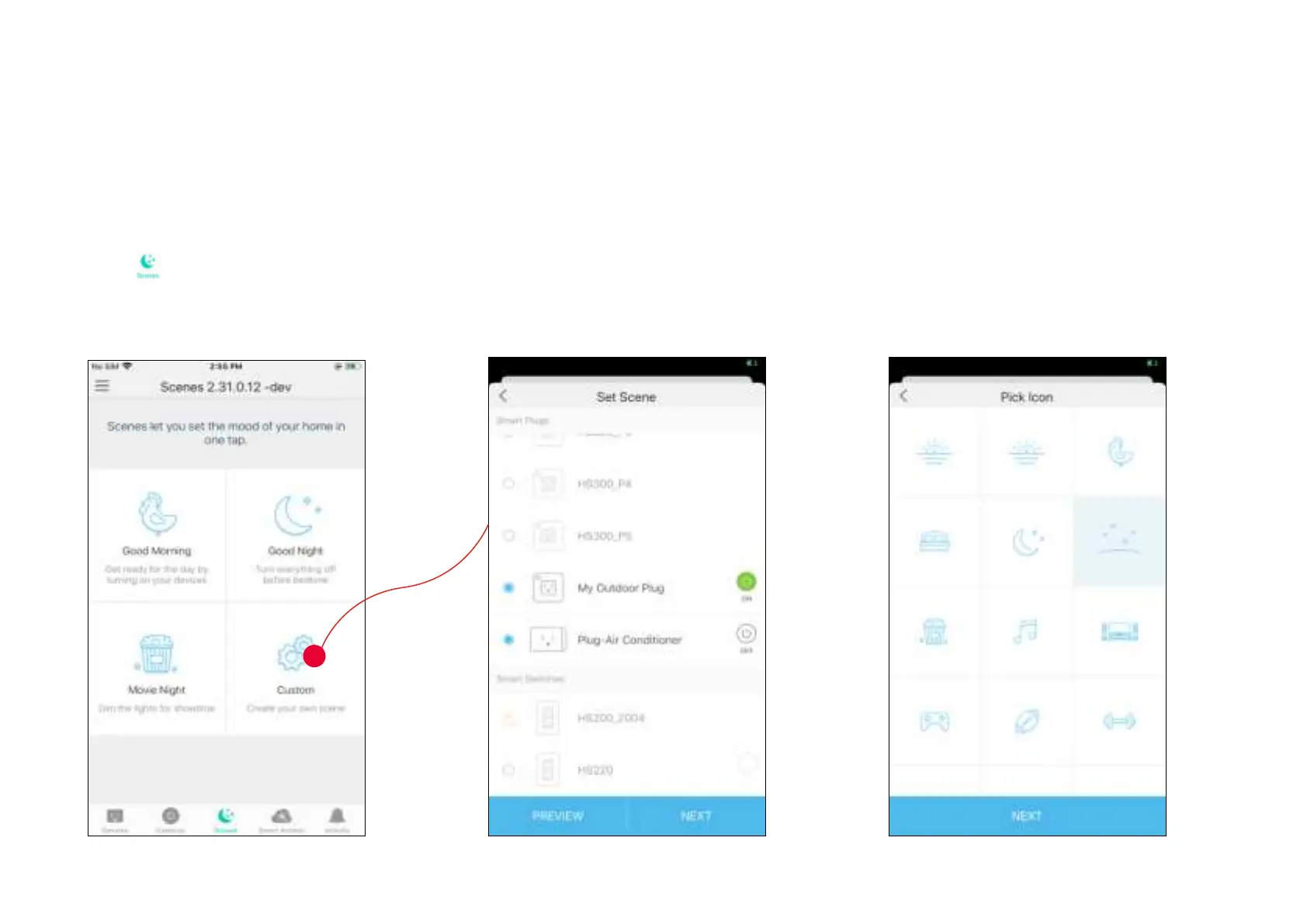 A scene is a preset group of smart devices that can be programmed, customized and activated simultaneously at the touch of a button from your