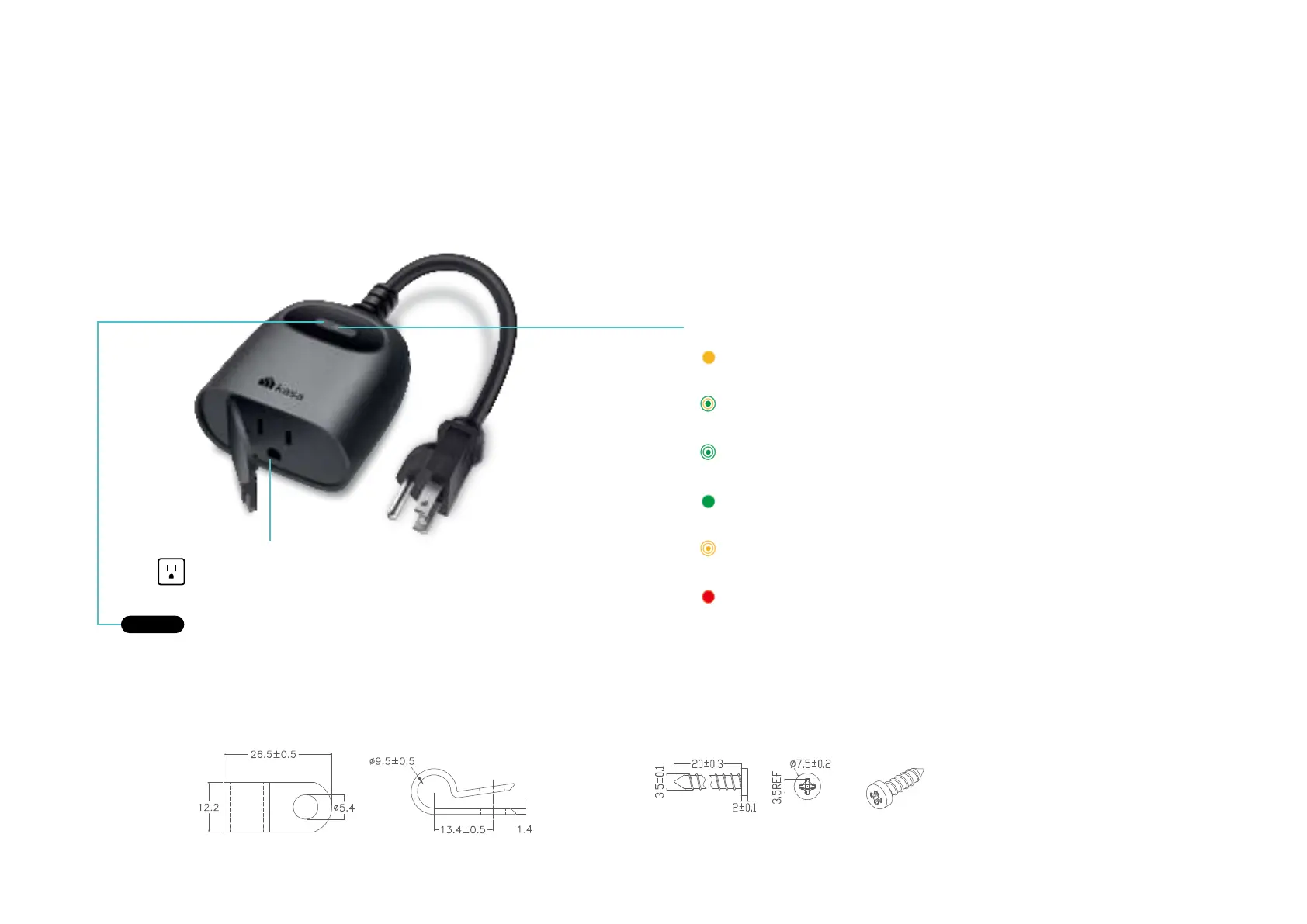 This smart outdoor plug has one control button to turn on or o the plug-in device and a LED to show you the current status. The LED changes color