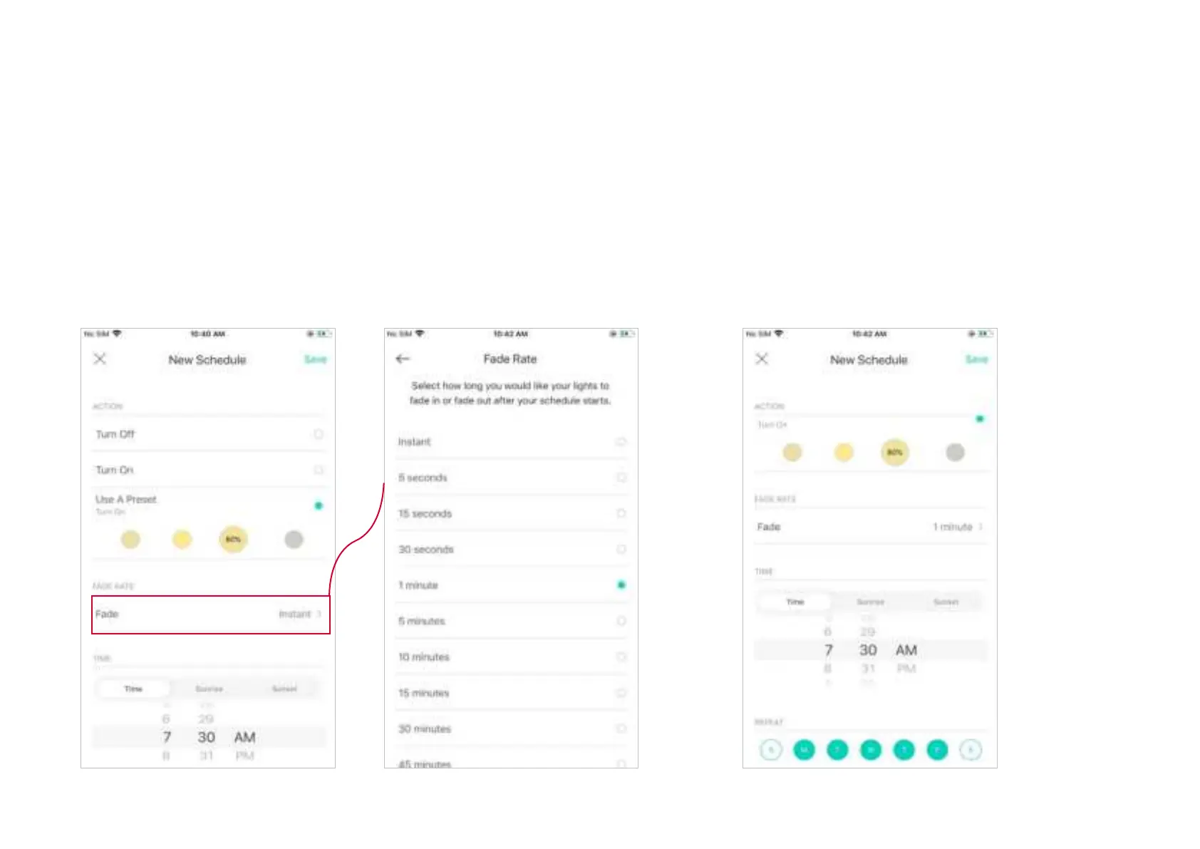TP-Link Kasa Smart KP405 - Configuring Fade Rate; Defining Schedule Time and Frequency