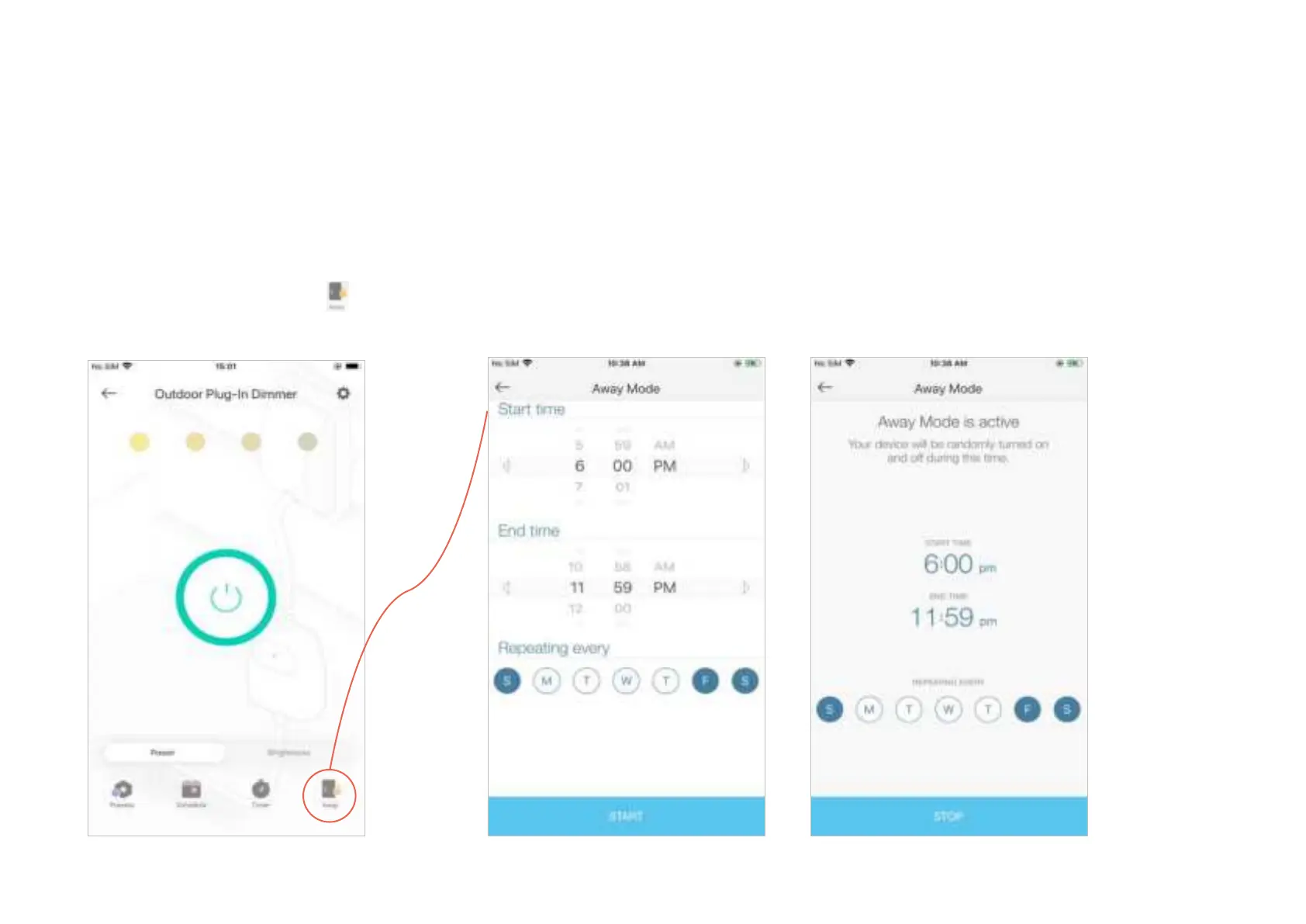Set Away Mode for your plug-in dimmer to turn on/o automatically at random intervals while
