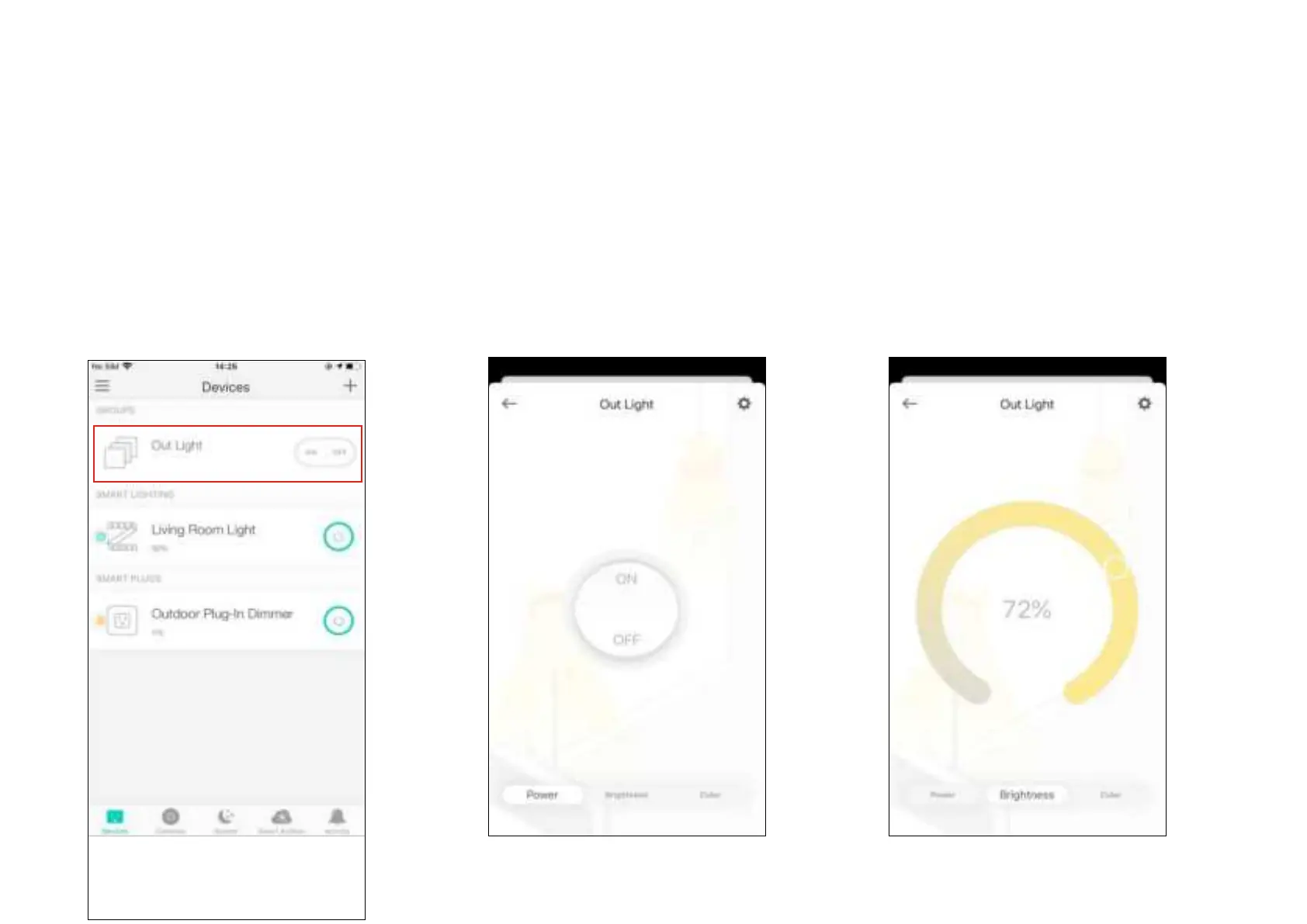 1. Tap the group you want to manage. 2. Turn on or o the devices in the Group in