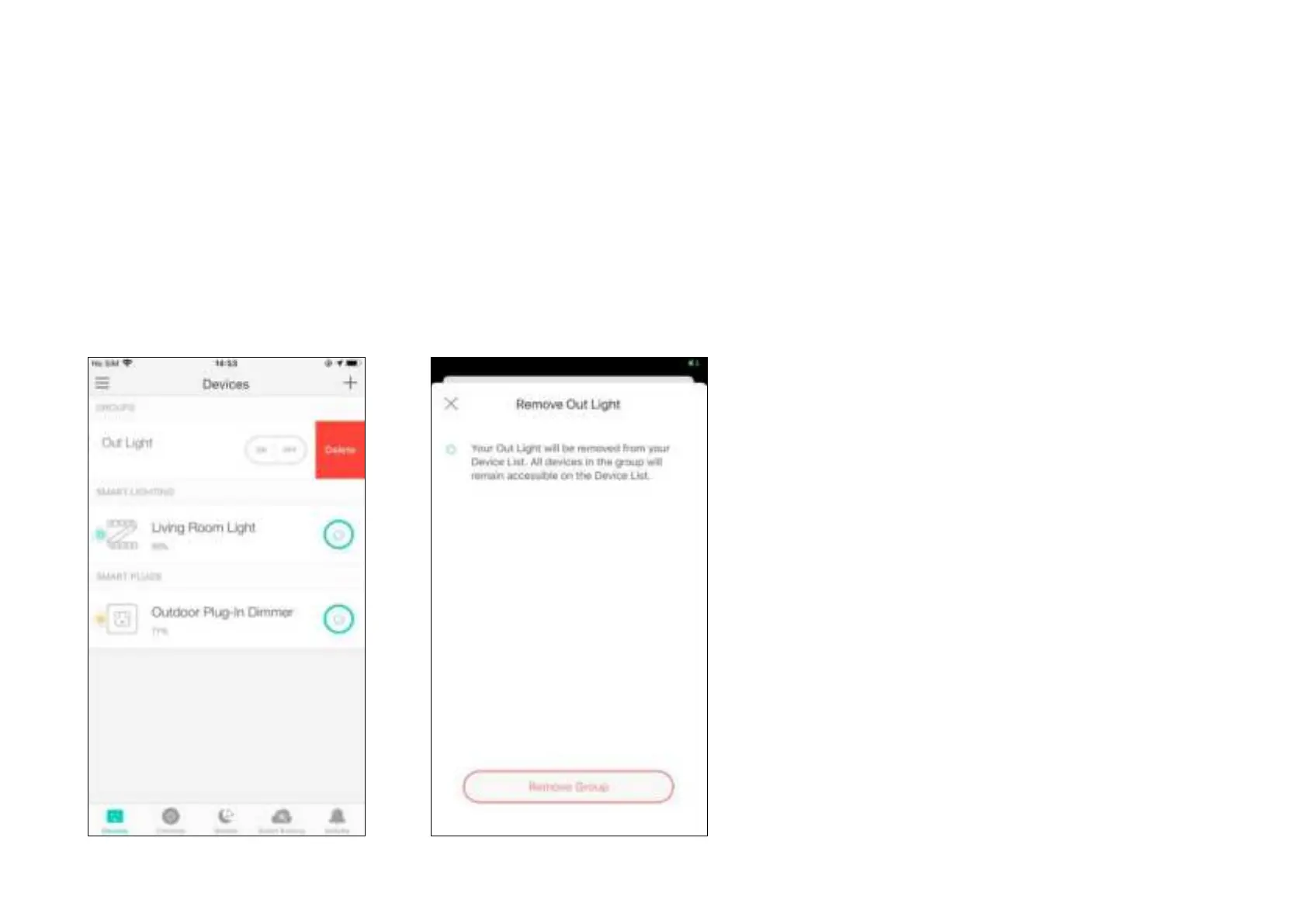 In the Devices page, swipe your group left, then tap Delete.