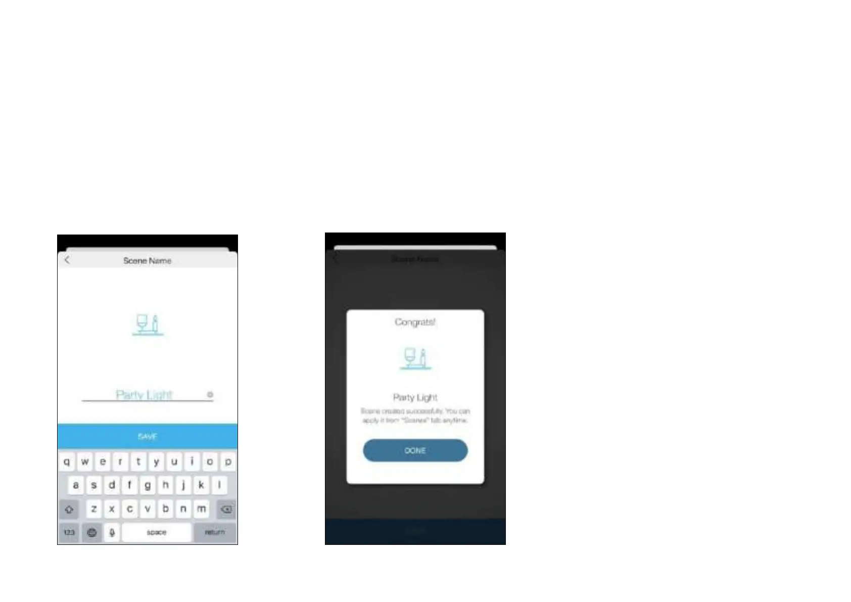 4. Name your scene. 5. Tap Save. Then your scene is created successfully.