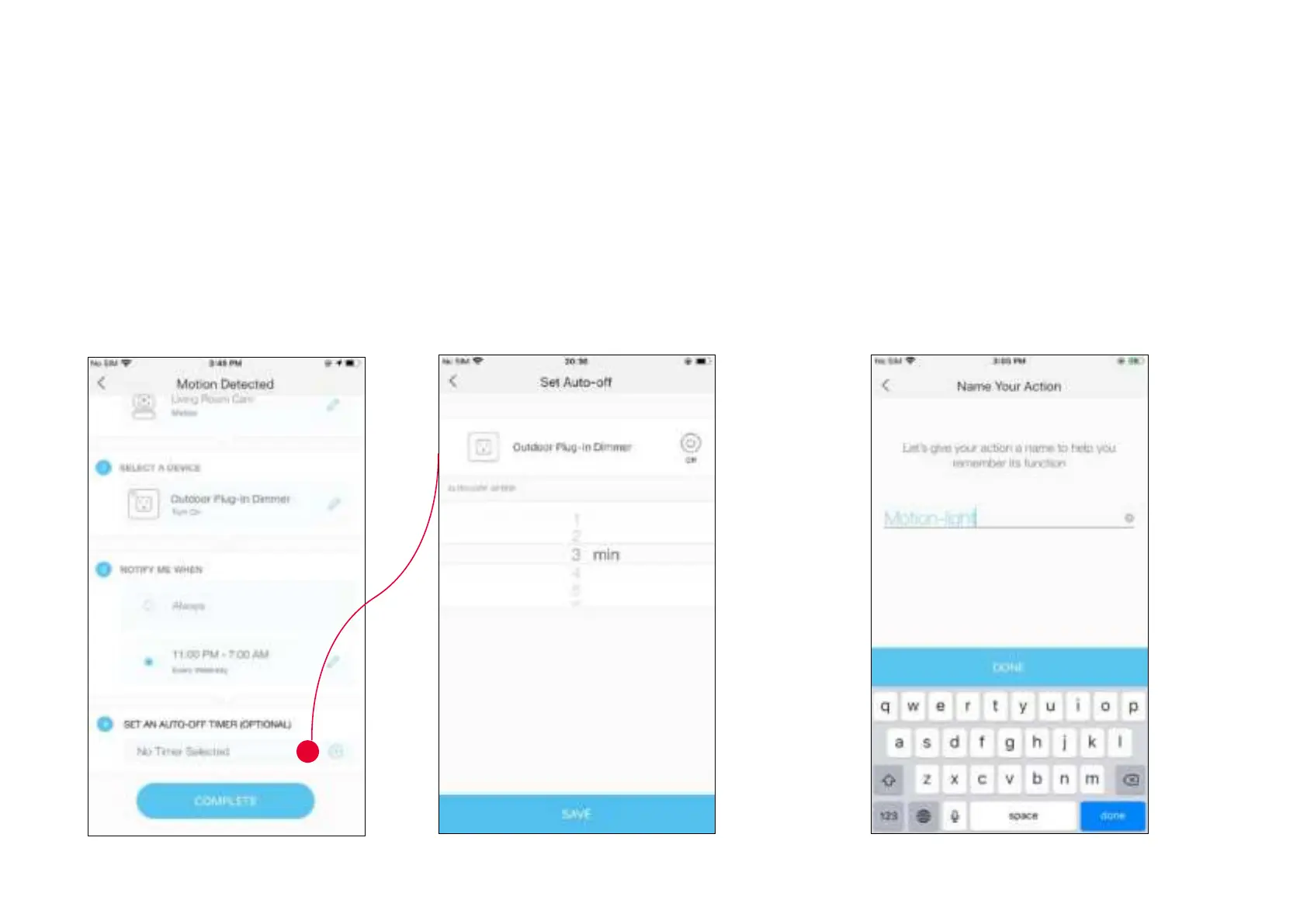 4. (Optional) Set an auto-off timer then tap Complete. Then your outdoor light will be