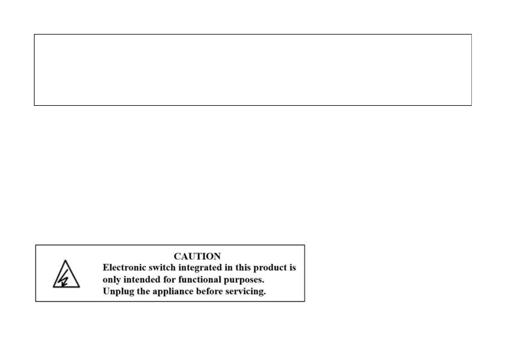 • Risk of electric shock. Do not open. No user serviceable parts inside.