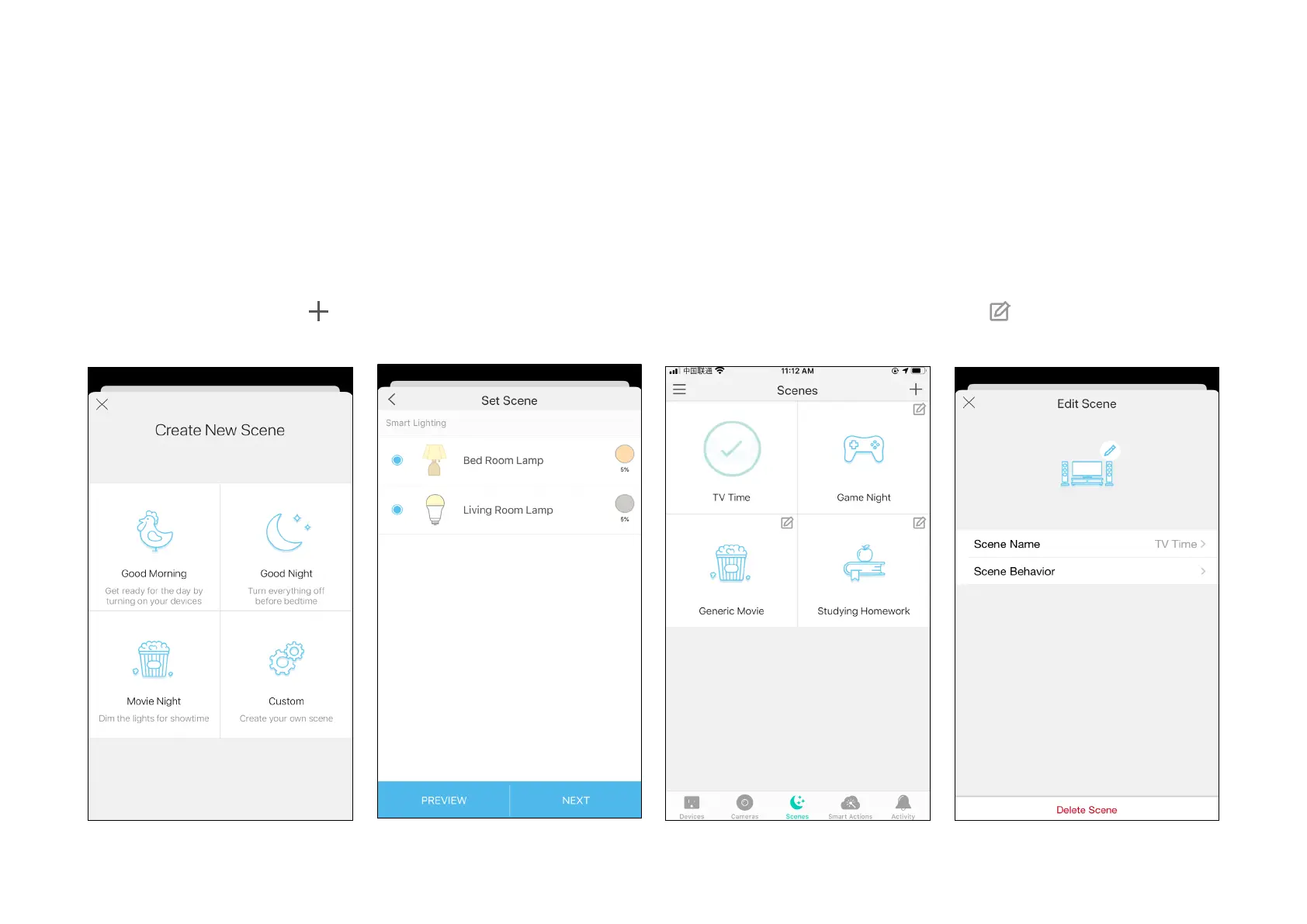 A scene is a preset group of smart devices that can be programmed, customized and activated simultaneously at the touch of a button from your